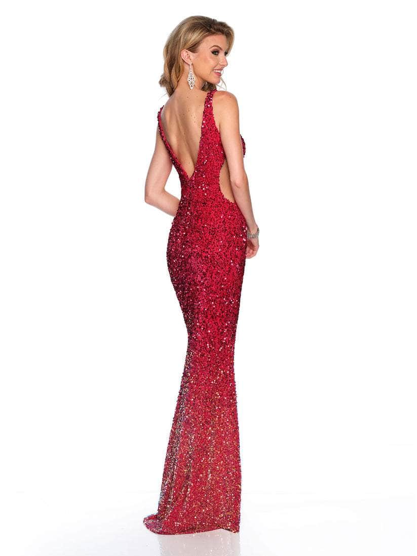 Beam with pride when you wear this radiant creation from Dave & Johnny 10761. This exquisite gown showcases a plunging V-neckline with a thin strap along the bust while the back reveals a low V-shaped cut detail fastened by a center zipper closure. Held by a wide shoulder strap, the fitted gown also highlights a sheer side cutout that provides an exquisite touch. Adorned with all-over sparkling sequins, the gown parades a full-length sheath silhouette with a dramatic ombre color effect. This Dave & Johnny style is perfect for prom, pageant, or a black tie event. Models are wearing the Gunmetal Silver, and Fuschia Pink colors.