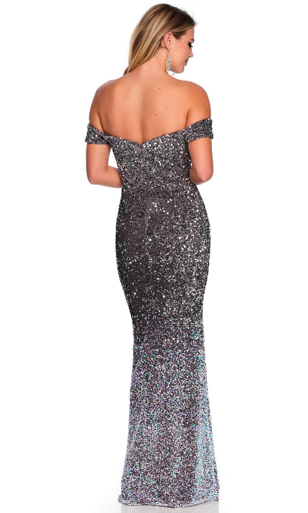 Elevate your glamour with Dave & Johnny 11489, a dazzling gown featuring sequins over lightweight crushed velvet fabric. The off-shoulder illusion corset bodice and sweetheart neckline exude sophistication. A central zipper closure at the back ensures a flawless fit. The floor-length sheath silhouette of the skirt is accentuated by a high slit, adding a touch of drama to this fabulous ensemble. Dave & Johnny 11489 is the epitome of modern elegance, making it a captivating choice for any special occasion. Model is wearing Grey Ombre color.