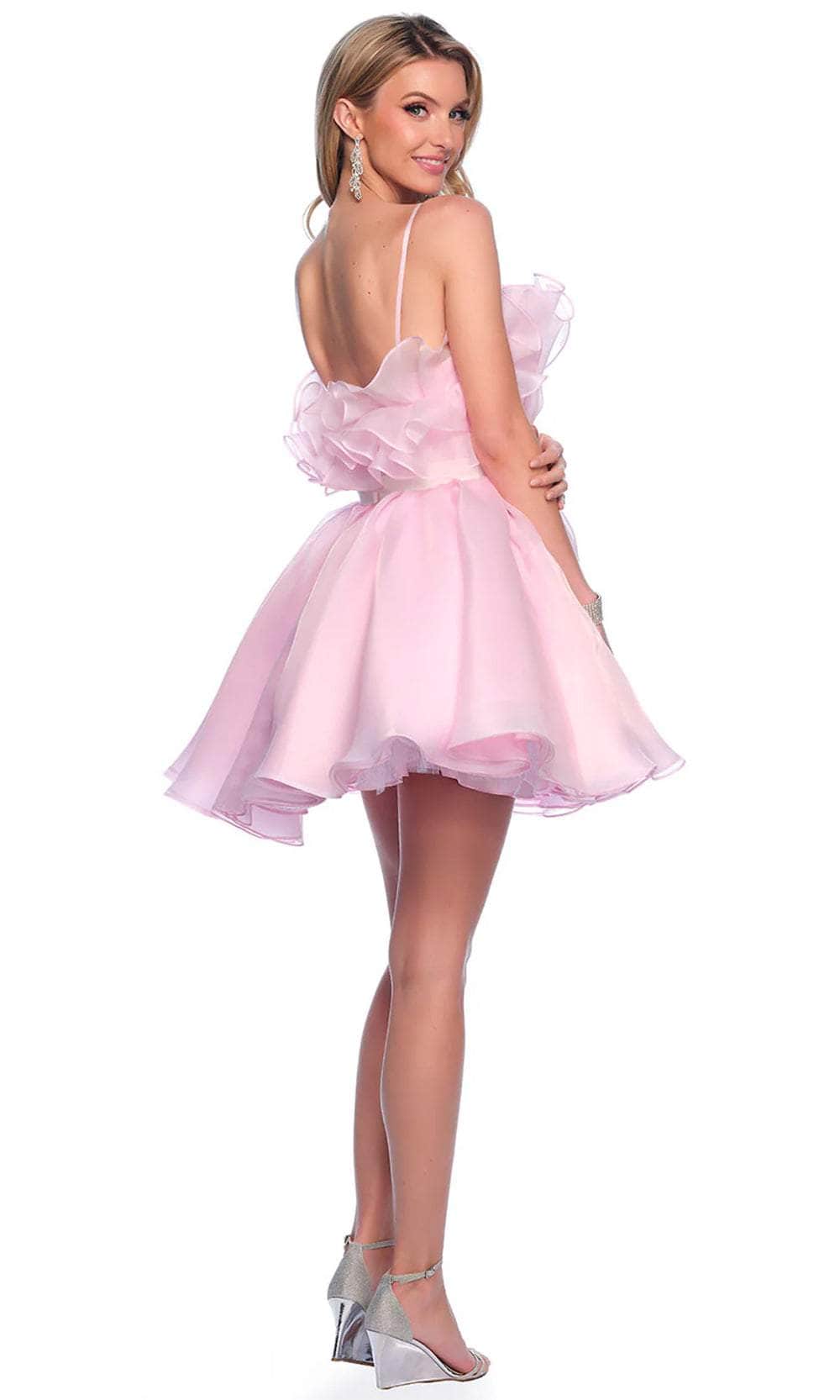 Embrace your inner style icon by wearing the Dave and Johnny 11730 creation. This outfit has a sleeveless design that will keep you comfortable and lovely. The ruffled trims on the straight-across neckline and open back, exude drama and romantic touch. It also flaunts spaghetti straps and a stylish ribbon belt that wraps the waist for a slender look. The mid-thigh skirt is detailed with box pleated and it softly falls into an A-line silhouette. This Dave and Johnny 11730 dress is perfect for making a statement at any party. Model is wearing Pink color.