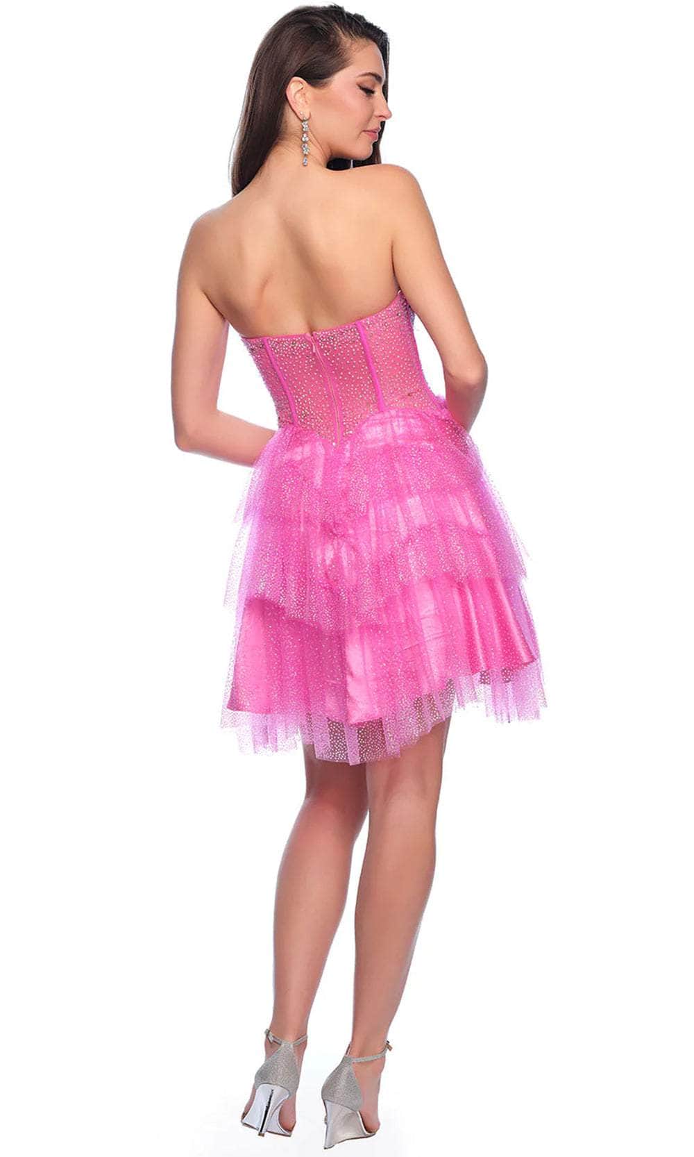 Show off your exceptional style in this creation from Dave and Johnny 11878. This strapless outfit adorned completely with beads creates shimmer and is truly enchanting. The plunging v-neckline has illusion detail in the bust for coverage, while the sheer corset bodice exposed boning gives structural support. To make dressing easier, it shows a concealed zipper closure in the mid-open back. The skirt hits the short hemline and creates a feminine A-line silhouette that suits all curves. Steal the show in this Dave and Johnny 11878 dress. Models are wearing Black, and Pink colors.