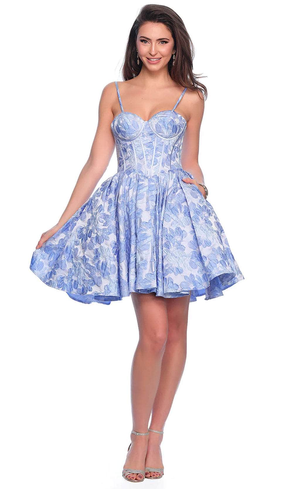 Feel beautiful and elegant as you walk into the crowd with this Dave & Johnny 11960. This breathtaking dress features a sleeveless corset bodice and a sweetheart neckline, elegantly supported by delicate spaghetti straps. Blending classic sophistication with contemporary glamour, the design ensures you stand out. The lace-up tie and center zipper at the back provide a flawless fit. Completing the look is a short-length A-line silhouette skirt adorned with convenient side pockets. The Dave & Johnny 11960 is the perfect choice for any special occasion where you want to leave a lasting impression. Model is wearing g Blue color.