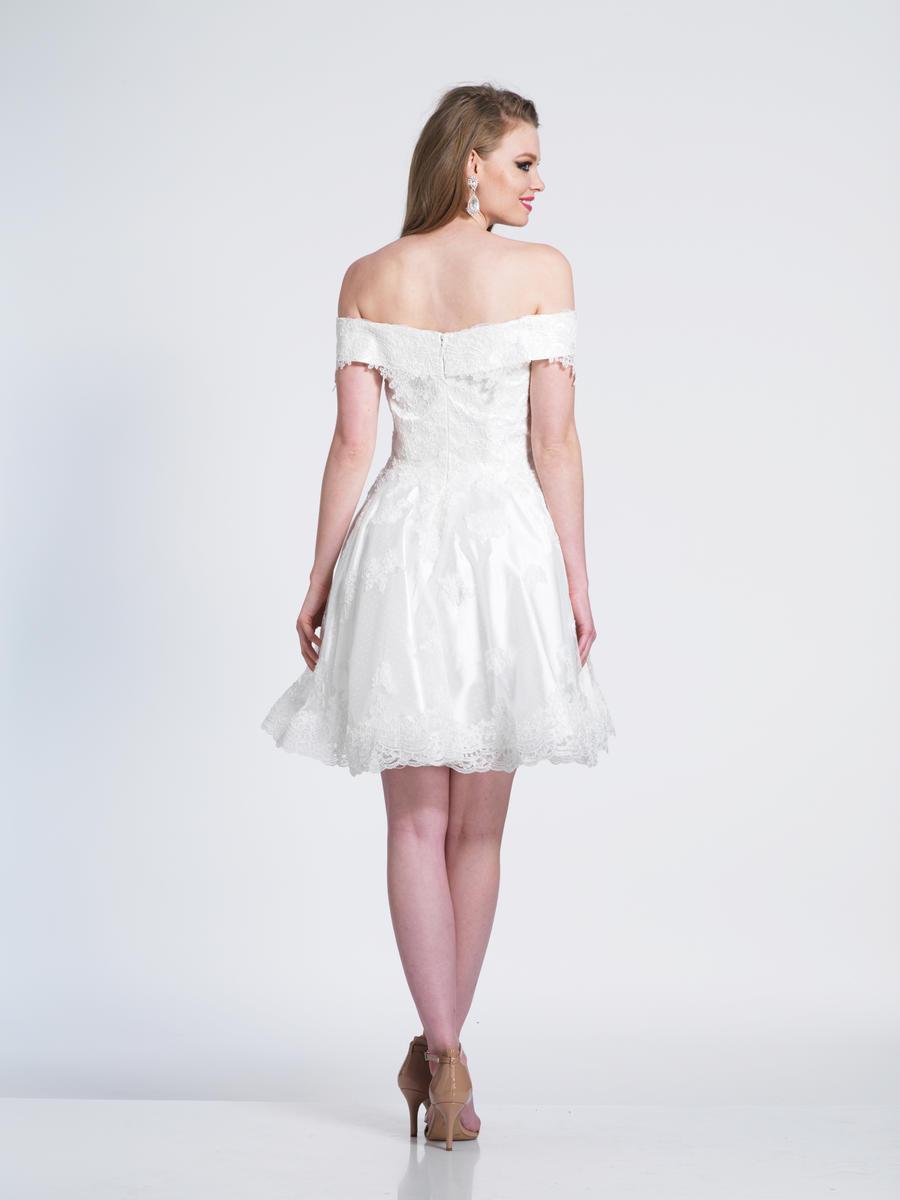 | Details: | Off shoulder cap sleeves, Lace applique, Fully lined, Back zipper closure |