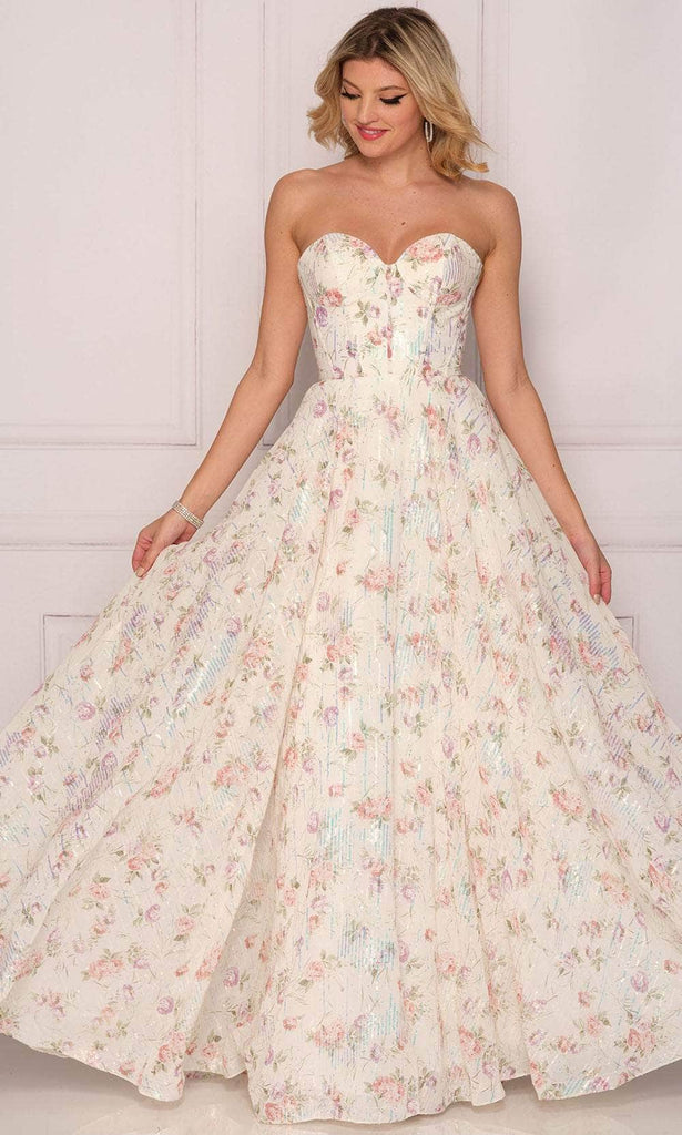 Look fabulous for your event in Dave & Johnny A10391. Flaunts a strapless, sweetheart neckline with fitted bodice styled with mid-open back secured by a center zipper. From the natural waist begins a full length ball gown skirt in its full-length hem. This Dave & Johnny gown is sure to be an attention-grabber in any occasion. Well known for intricate fabric and exquisite pattern work, Dave & Johnny dresses are sure to be a heavy draw at this years prom, or more likely that key occasion where only the most beautiful long or short gown makes the cut. Model is wearing Print color.