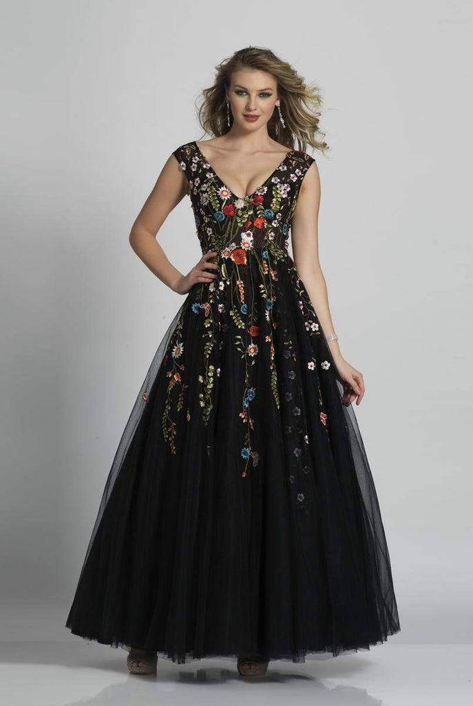 Be a woman of style and beauty in this attractive Dave and Johnny A5703 evening dress. The sleeveless bodice frames a features a V neckline with a touch of decolletage. A trim fit traces the curves of bust, midriff and waist while gossamer layers grace the gathered skirt as it wafts to a flurry of flutters at the feet. This A-line dress cascades to a full length hem. Garlands of folkloric wildflowers drape you with fresh accents from shoulders to knees. The back has a scoop shape with a center zipper closure. Dave and Johnny design will let you celebrate that divine feminine beauty! Model is wearing Black color.
