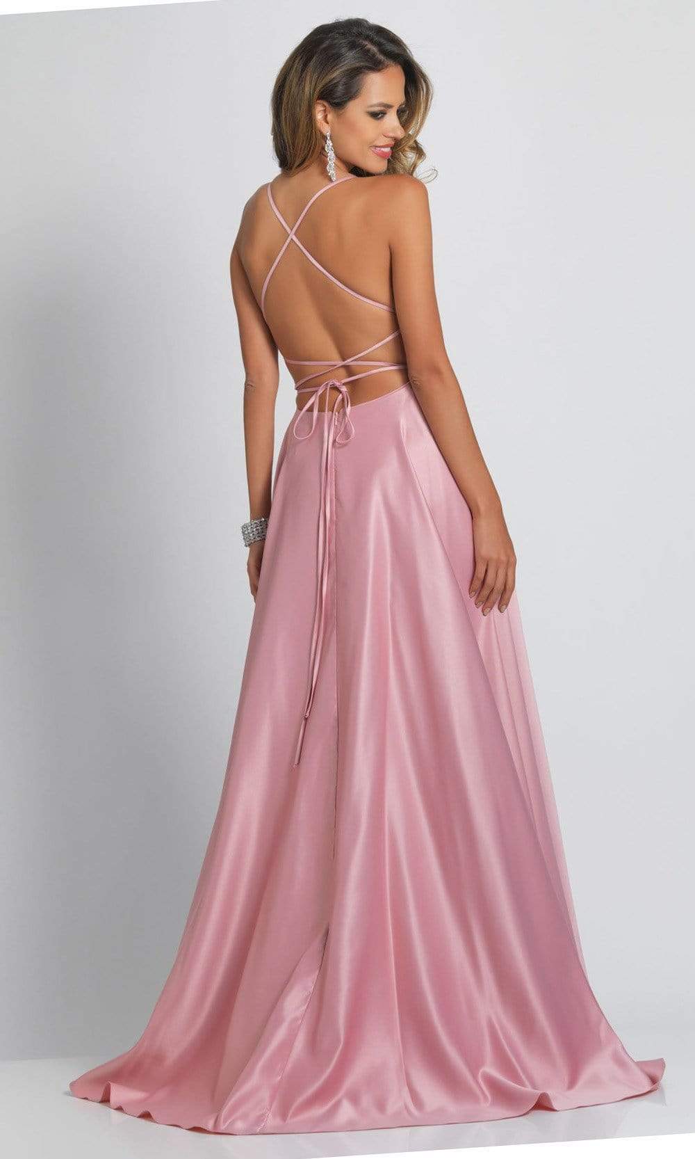 Spice up the evening with a stylish allure in Dave & Johnny A6690 evening gown. This full-length vibrant Mikado gown showcases a bare back with strappy details to support the fitted front bodice. The gown flaunts a full A-line silhouette skirt that finishes with a lovely sweep train. Beam with pride when you wear this radiant and captivating style from Dave & Johnny.