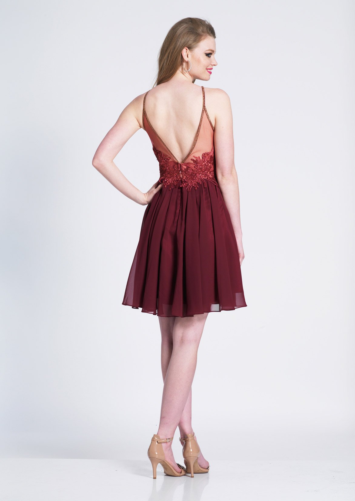 Dress to impress on your next formal event in this simple but captivating dress by Dave & Johnny A7050. Fashions a sleeveless, halter neckline with fitted bodice adorned with embellishments, embroidery, and styled with a front keyhole. The dress has a low V-back and a mid-thigh pleated A-line skirt for a fun and flirty look. Experience the outstanding effect in this dress by Dave & Johnny.