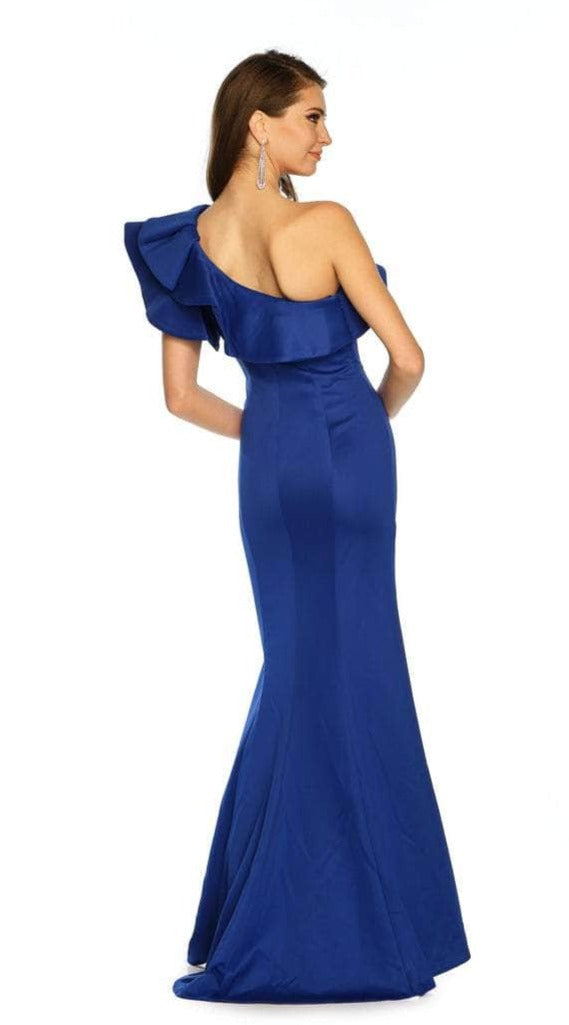 Dave & Johnny A8568 - Asymmetrical Neckline Evening Gown With Slit