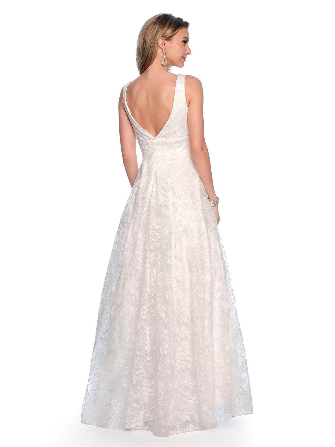 Step into forever wearing the Dave & Johnny Bridal 10591W masterpiece. This wedding gown gracefully contours the feminine form, showcasing a delicate balance of allure and sophistication. The sleeveless design accentuates the shoulders, while the deep V-neckline with illusion inset exudes a touch of modern romance. Allover lace details adorn the bodice, adding a layer of intricate artistry. The empire waist accentuates the natural waistline, leading to an A-line skirt that flows effortlessly into a floor-length hem. The V-open back offers a subtle hint of allure, completing this captivating ensemble. This Dave & Johnny Bridal 10591W creation is a testament to timeless beauty and modern elegance. Model is wearing the Ivory color.