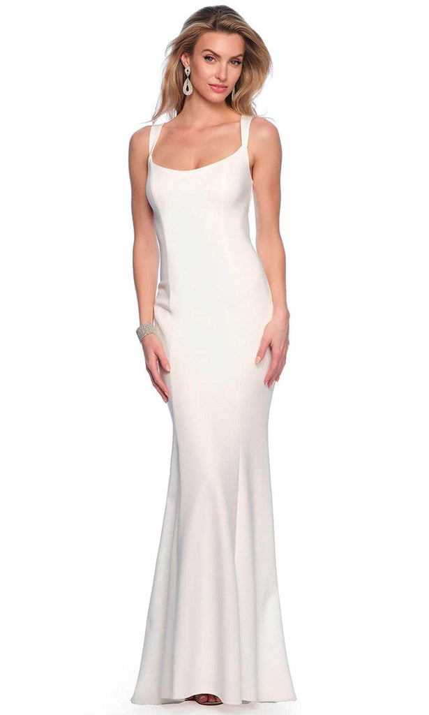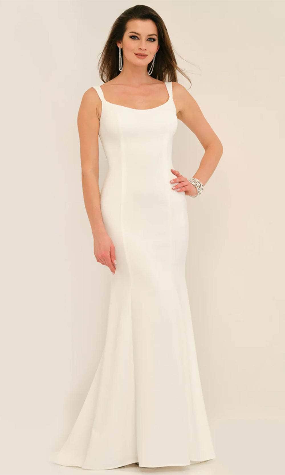 Embrace timeless elegance on your wedding day with the Dave & Johnny Bridal 11292 masterpiece. This wedding gown sculpts your form with meticulous tailoring, ensuring a flawless drape that cascades into a dramatic silhouette. The sleeveless design, accented by delicate tank straps and a scoop neckline, flatters your shoulders and décolletage. A tie-strap detail adorns the low open back. The mermaid skirt effortlessly flows into a graceful sweep train. Make an unforgettable exit on your special day in this Dave & Johnny Bridal 11292 gown. Model is wearing the Ivory color.