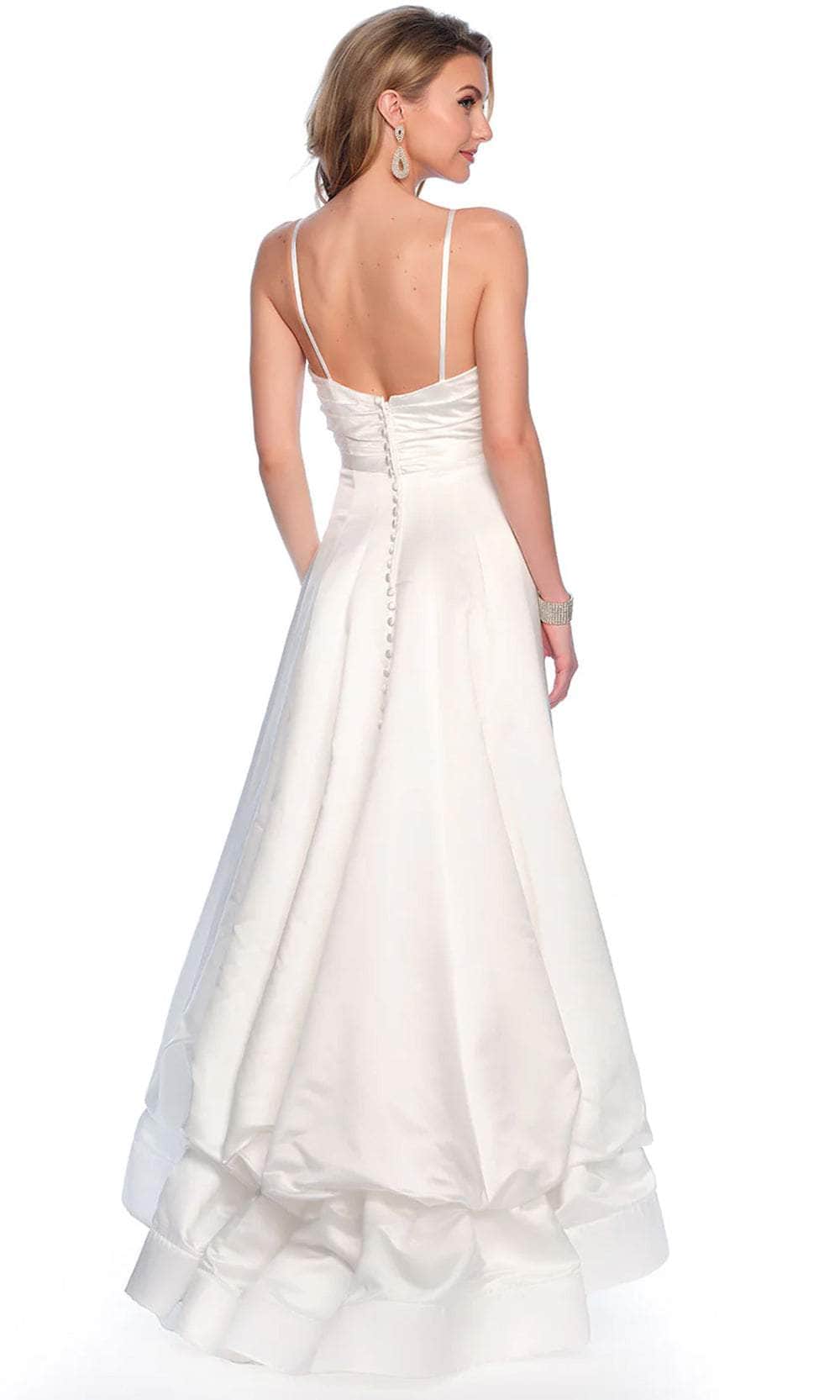 Discover timeless beauty in the Dave & Johnny Bridal 11816 masterpiece. This luxurious satin gown flatters the figure with its graceful drape and impeccable tailoring. The twisted bodice and spaghetti straps create a sophisticated neckline, while the empire waist defines the natural waistline. The A-line skirt, adorned with gathered ruffles, adds a touch of romantic charm. This Dave & Johnny Bridal 11816 creation is the epitome of understated elegance, perfect for the bride who wants to look and feel her best on her wedding day. Model is wearing the Ivory color.
