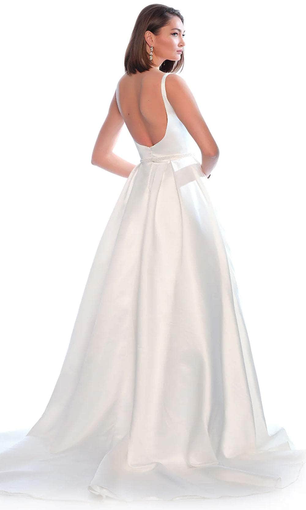 Say "Yes" to refined elegance with the Dave & Johnny Bridal 12119. This meticulously tailored satin gown flatters every figure and creates a timeless silhouette. The modern sleeveless design highlights a chic V-neckline, while a delicate pearl-beaded belt cinches your waist for a stunning shape. Functional pockets add a touch of practicality, and the open back whispers sophistication. The A-line skirt flows into a court train, making your walk down the aisle unforgettable. This gown is perfect for the bride who wants a blend of classic beauty and modern details. You'll be a radiant vision on your wedding day, leaving everyone breathless in this Dave & Johnny Bridal 12119 creation. Model is wearing the Ivory color.