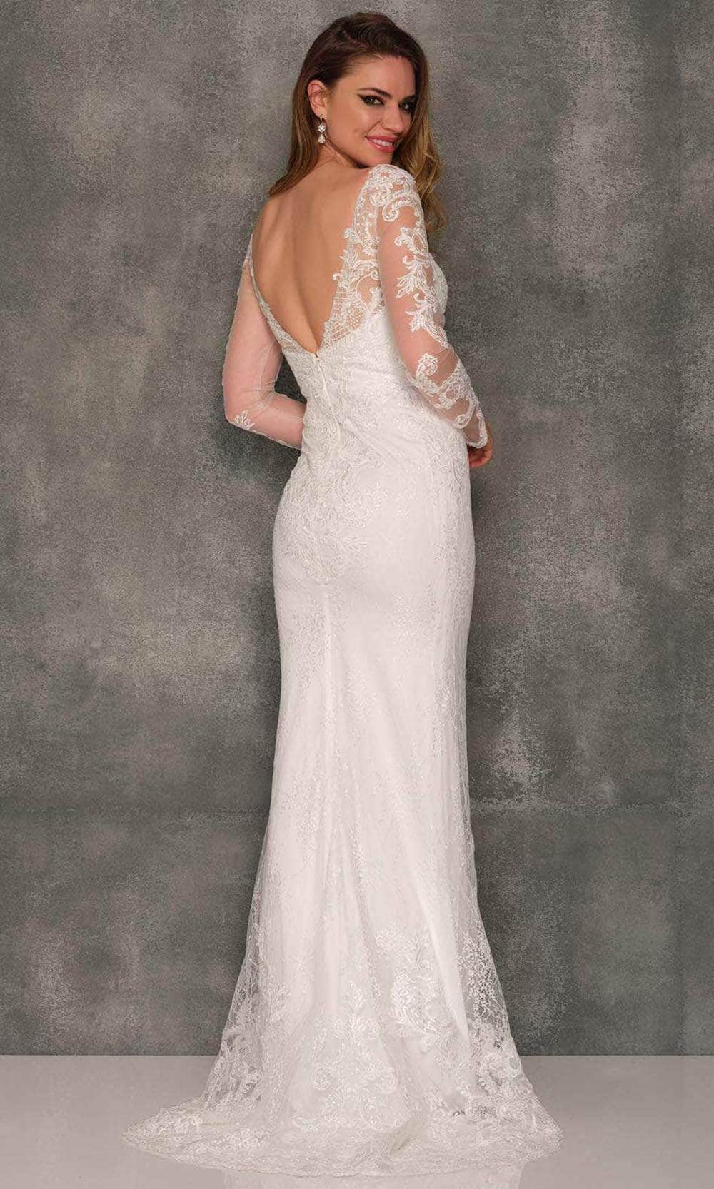 Turn yourself into a head-turning beauty in this gorgeously timeless wedding gown by Dave & Johnny A10450 creation. This dress features a stunning lace bodice with embroideries and long sheer sleeves over a sweetheart neckline accented with mesh inset. It has a low open back secured by a zipper which is made concealed to give you a flat finish, and the sheath style skirt that allows you to move freely. A sweeping train finishes the look of this ensemble. Feel the outstanding effect of this Dave & Johnny Bridal creation. Model is wearing the Ivory color.