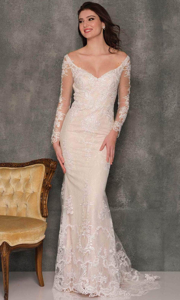 Strike a pose as you enter the hall in this exquisite Dave & Johnny A10452 long dress. Plunging V-cut neckline and alluring open back are featured in this stunning piece. The picture-perfect embroidered lace in a stunning pattern adorn the sleek silhouette, and a concealed zipper in the back of the dress keeps it in place and gives it a secure fit. The mermaid skirt with sweeping train complete the look. Be in this gorgeous Dave & Johnny creation and leave a lasting impression. Model is wearing the Ivory color.