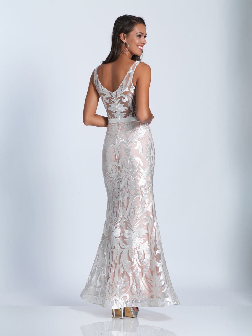 Show off a slim figure with this stunning evening gown from Dave and Johnny 3527. This stunning dress features a sleeveless bodice with illusion v-neckline over sweetheart bodice. From the thin waistband, leads to a fitted silhouette which flares slightly from the knee to a full length hem. The sheer back has a pronounced v shape secured with a center zipper closure. Make it a lovely moment in this gorgeous Dave and Johnny masterpiece.