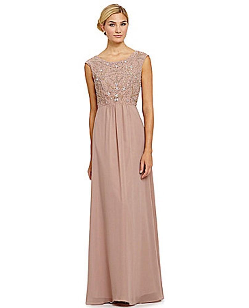 | Details: | Capsleeve, Bead and sequin detail, V-cut back, A-Line chiffon dress, Lined, Back zip closure |
