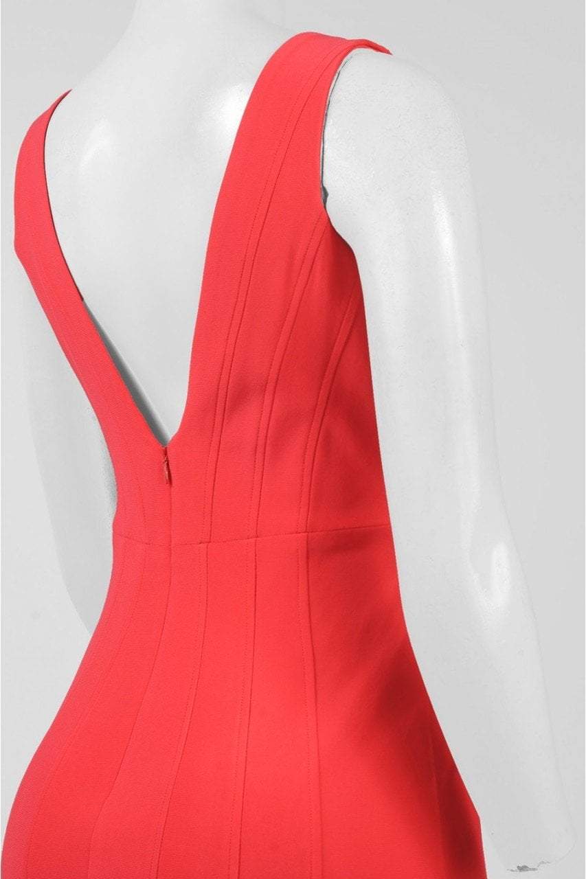 Be prepared to be poured in compliments with Decode 1.8 183910. This alluring style features a plunging v-shape neckline, a sleeveless bodice, and a similar plunging v-shape back. The sheath silhouette accentuates the body perfectly and flares at the bottom for a figure-flattering finish. You will sure to be the center of attention in this dress by Decode 1.8. Model is wearing Hot Coral color.