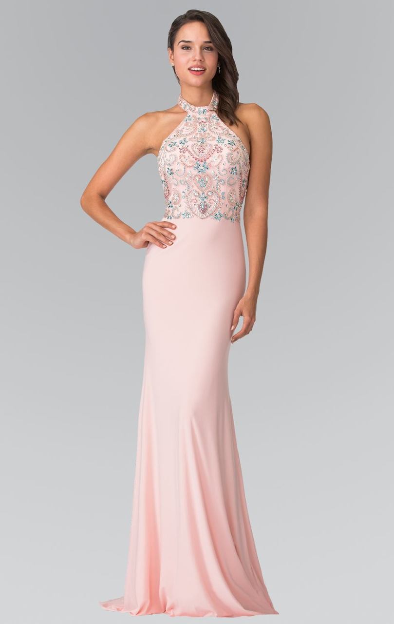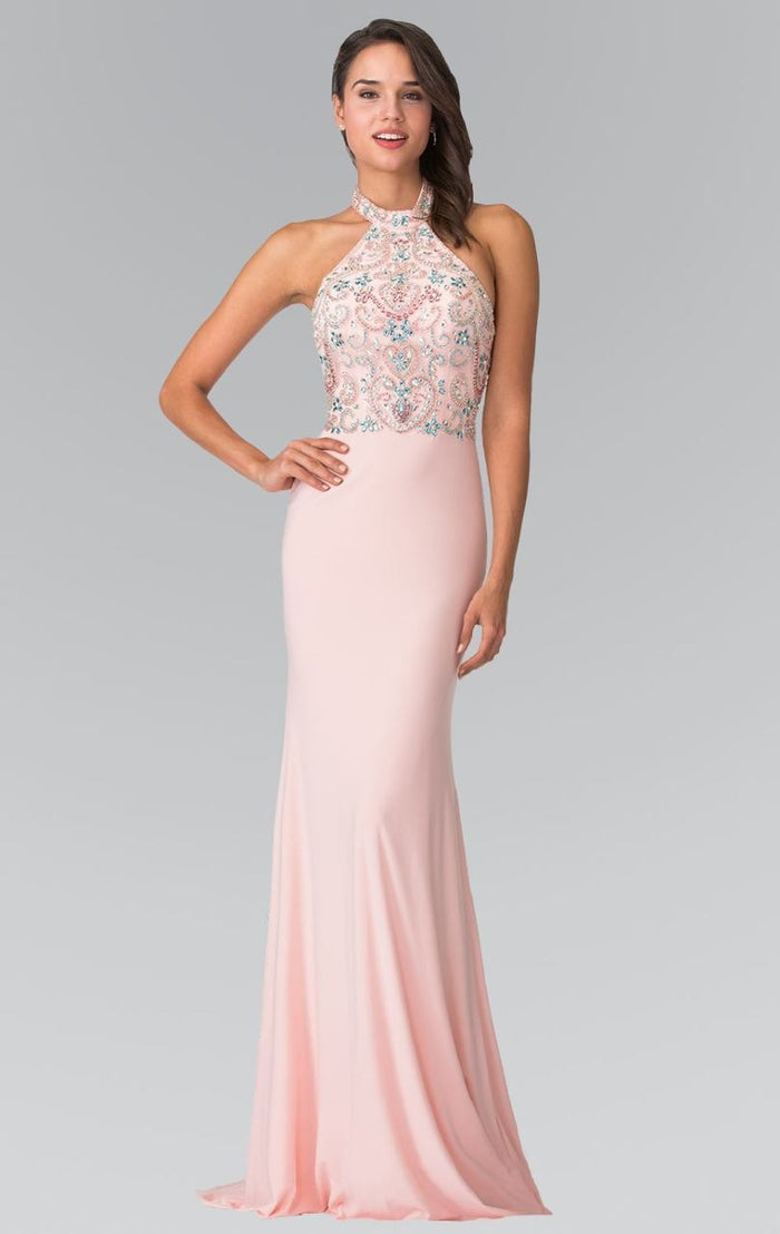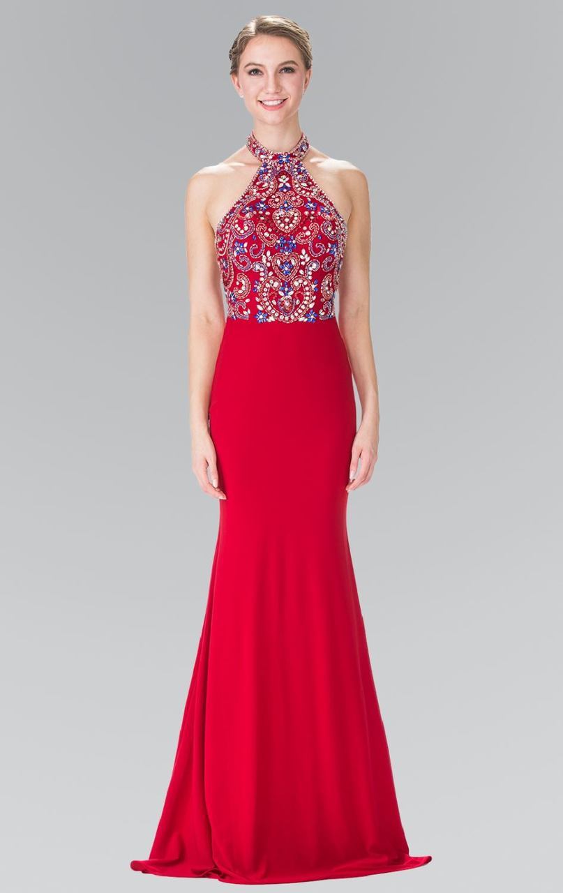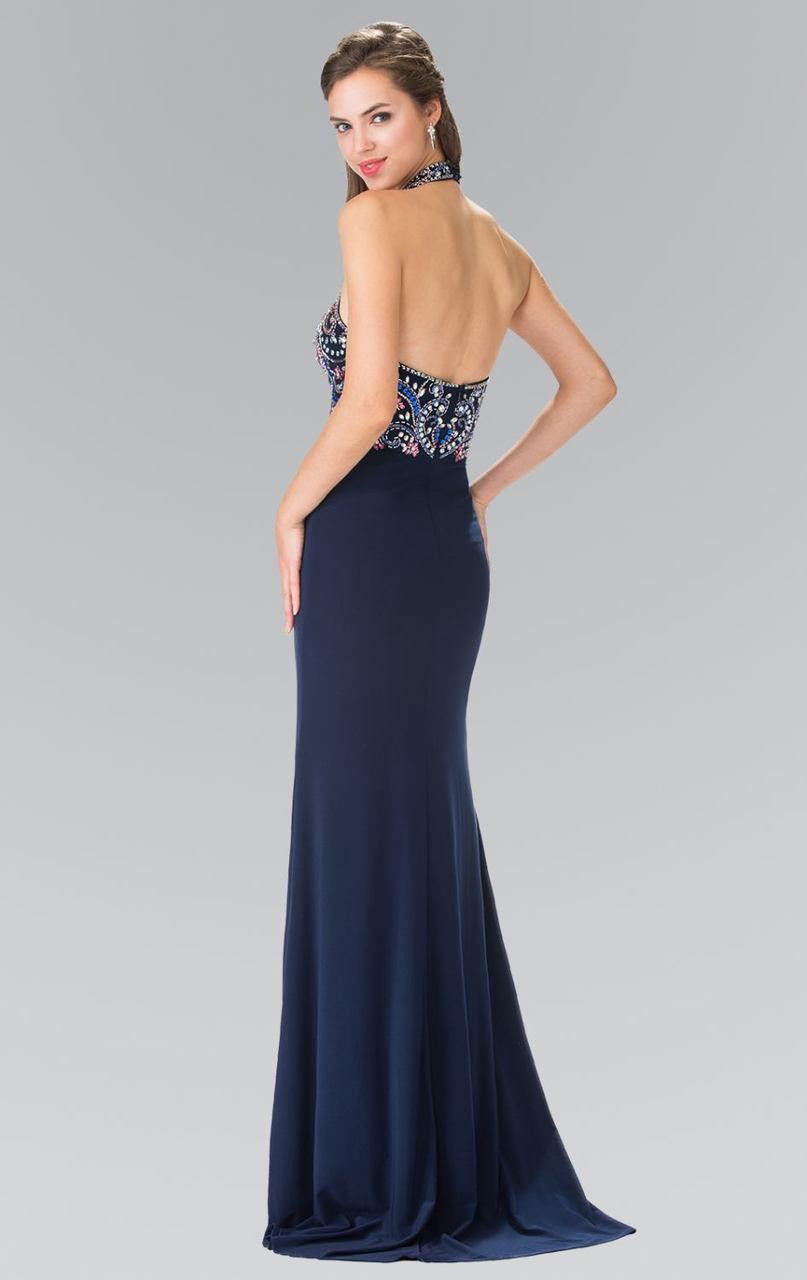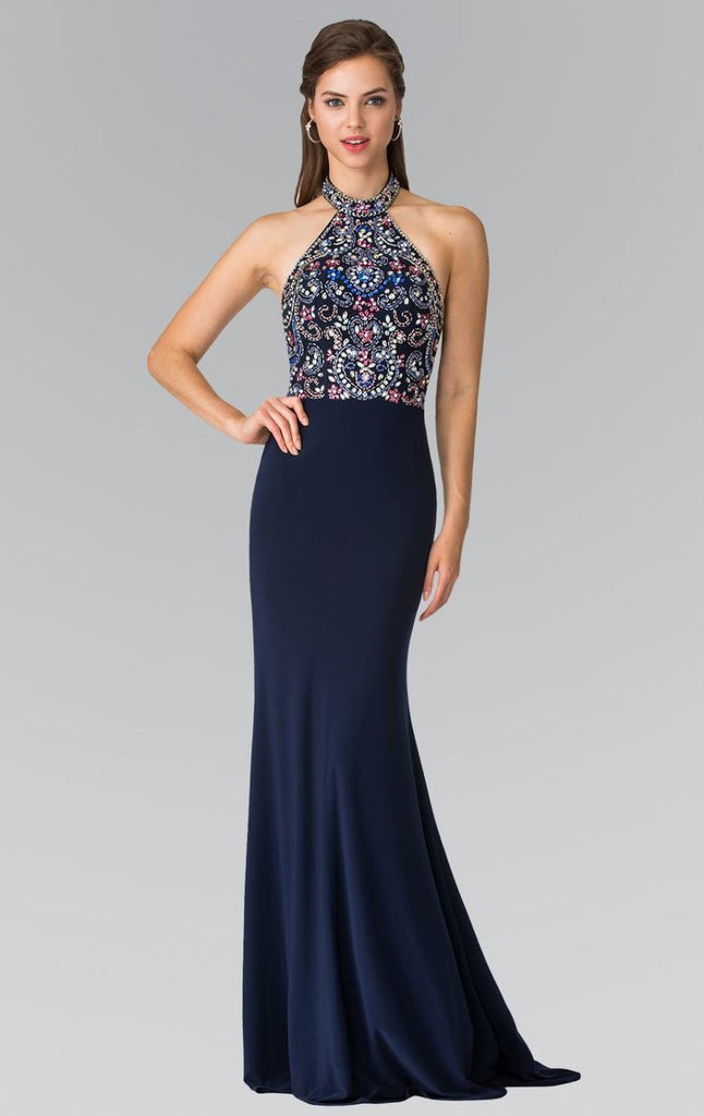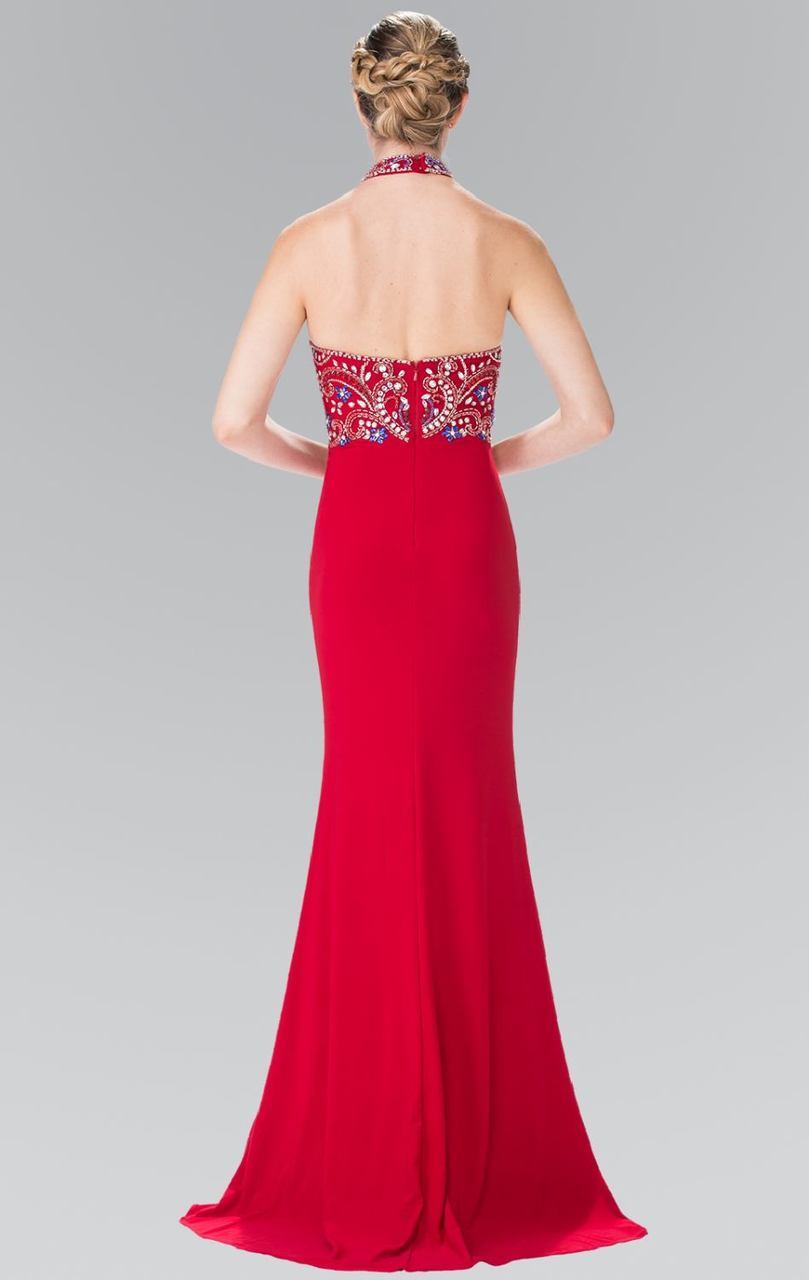 Elizabeth K - GL2279 Beaded Halter Neck Rome Jersey Sheath Dress