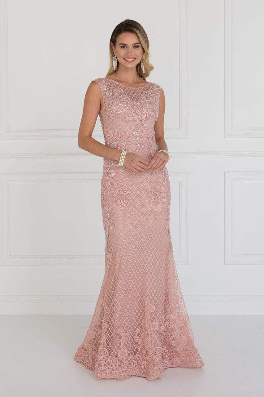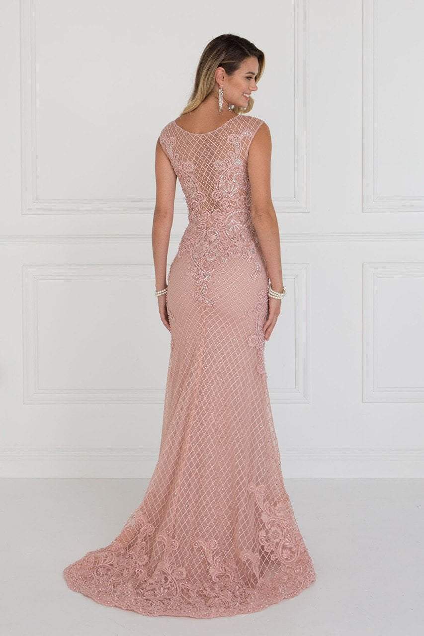 Turn yourself into a head-turning sensation by slipping into this utterly fetching Elizabeth K GL1536 dress. This long formal dress features an illusion bateau neckline with cap sleeves. The fitted bodice is richly ornate with bead and jewel embellishments. The skirt has a sheath silhouette that finishes in a sweep train. Be picture-ready in this dress by Elizabeth K.