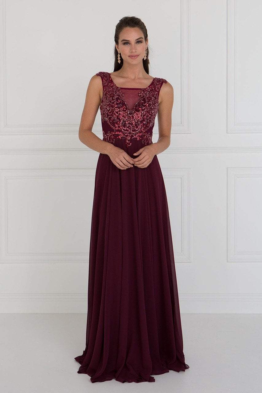 Exhibit exceptional style in this superb evening gown by Elizabeth K GL1566. Showcases a sleeveless, square neckline with sheer inset. The V-lined bodice is embellished with bead accents and features a V-back with zipper closure. The A-line skirt runs in full length hem with mini train. Step out in style wearing this stunning Elizabeth K creation.