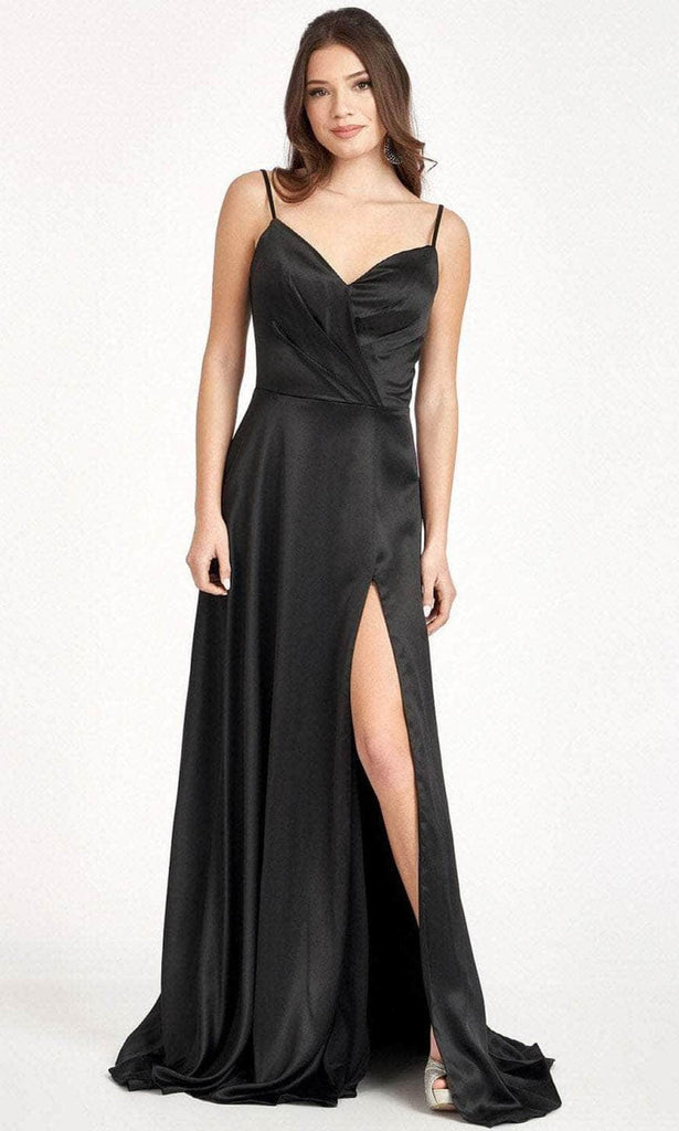 Transform into a sultry siren when you don this Elizabeth K GL1993 creation. Sleekly tailored for that flattering fit, this satin piece parades with a v-neckline on a spaghetti strap trailed bodice. Defined with pleats gathering in a faux wrap bodice, the back is also accented with a v-open design and a zipper closure. Highlighted with a sexy slit, the satin skirt as it flows into a full length A-line silhouette. Dare to stand out among the stylish crowd in this classy Elizabeth K masterpiece. Find more Bridesmaid Dresses.