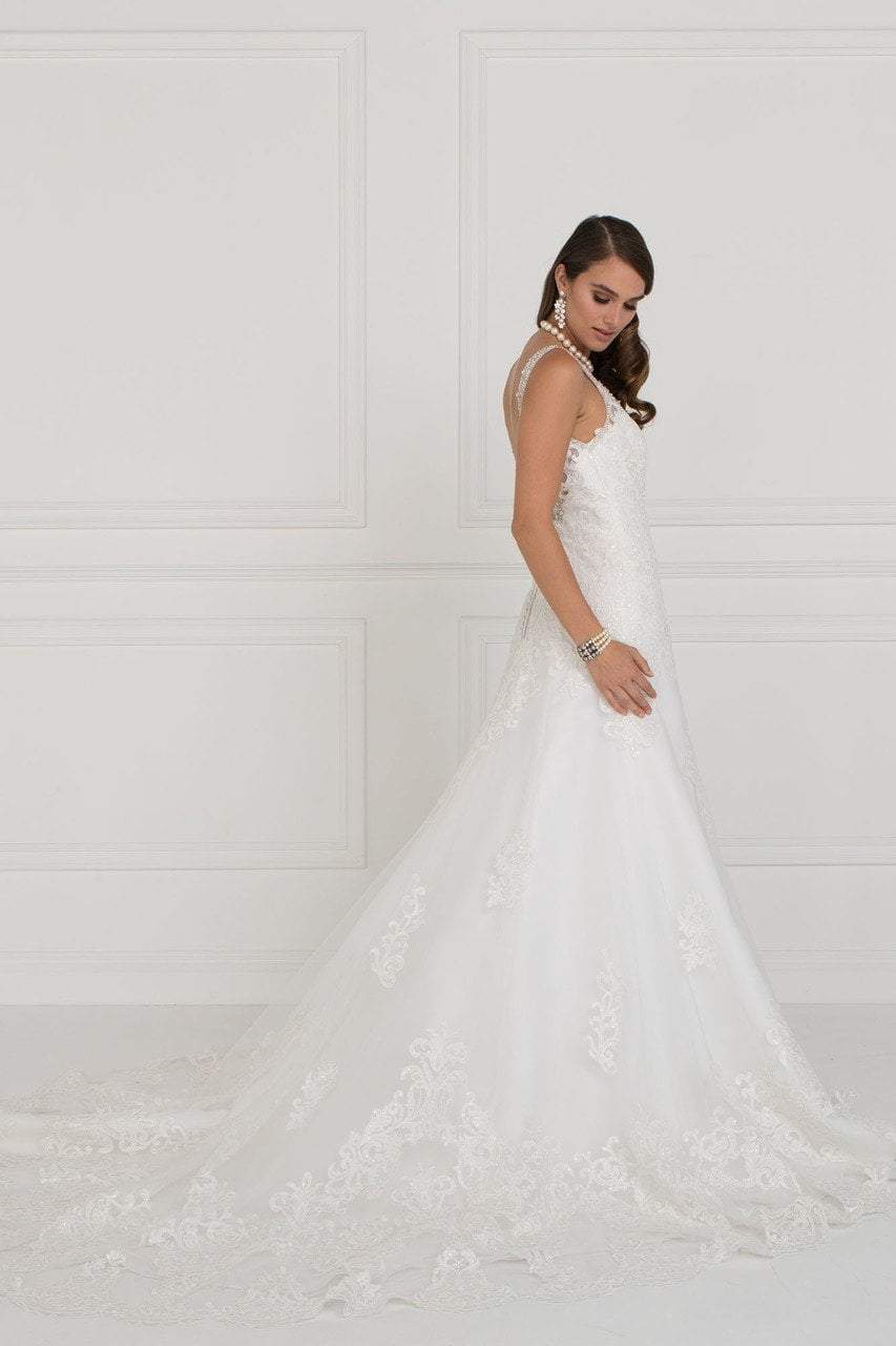 Be a woman of style and beauty in this classy Elizabeth K GL2376 gown. Graces in a sleeveless, V-neckline with thin straps supporting the jeweled bodice. The back has a low V-cut and has a zipper closure accented with buttons. A full length A-line skirt flourishes towards the floor and completes the look in a sweep train. Embrace a radiantly romantic look in the flatteringly feminine gown from Elizabeth K.