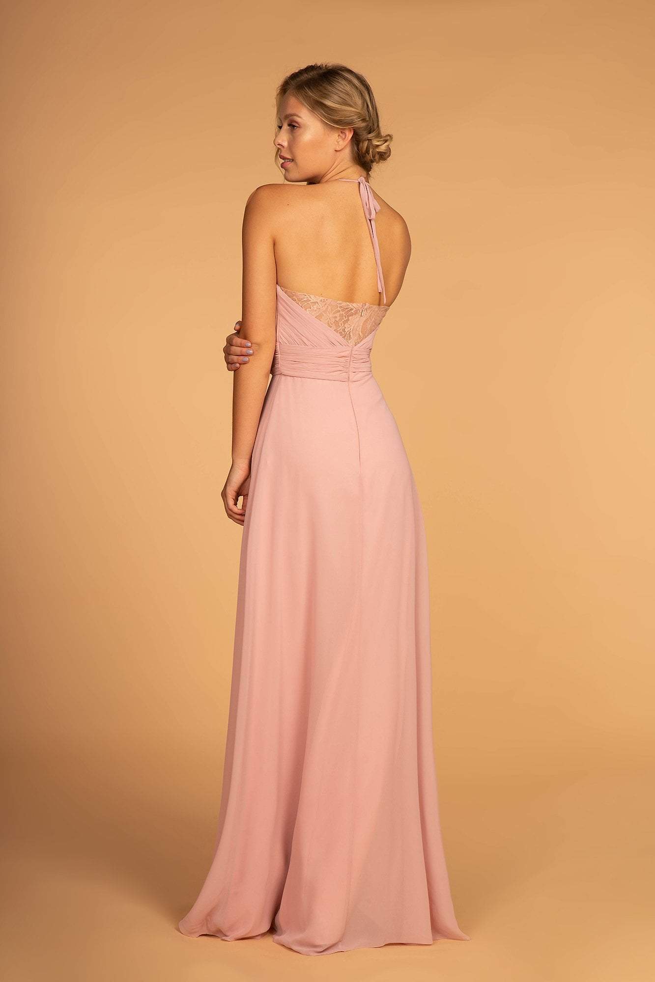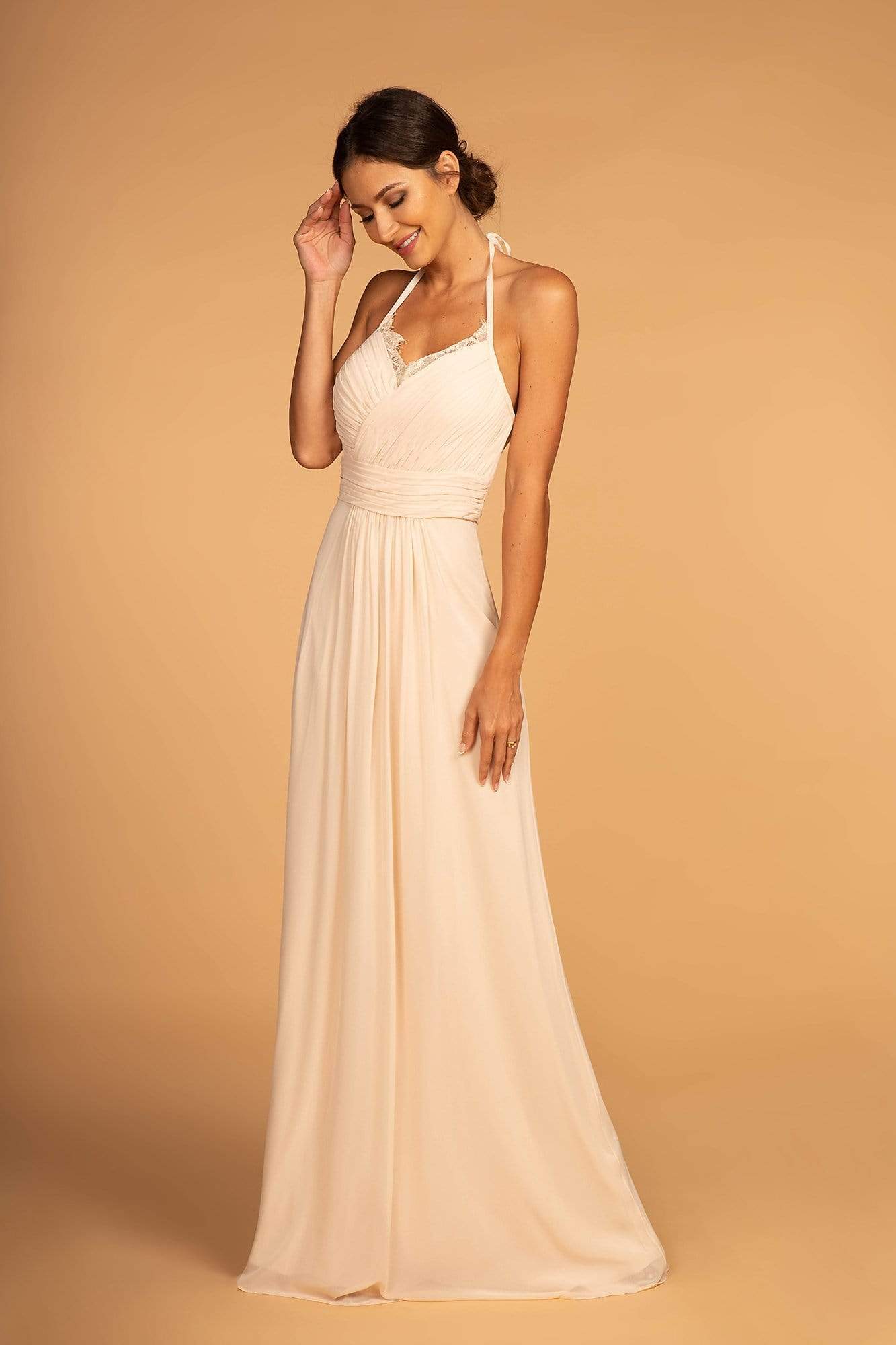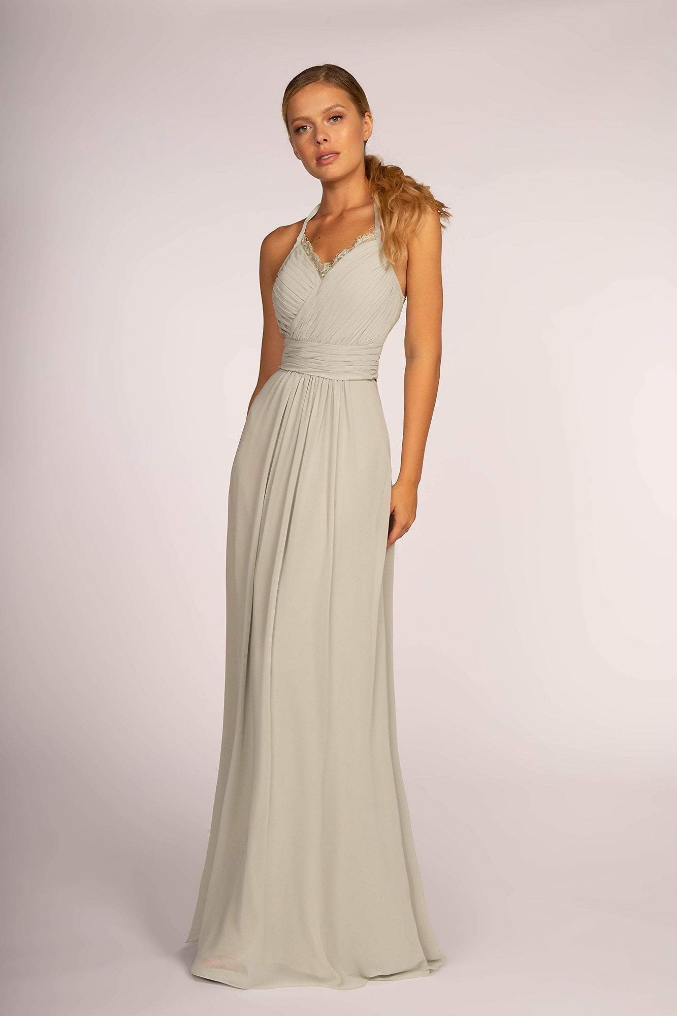 Elizabeth K - GL2606 Lace Pleated Halter Chiffon A-line Dress