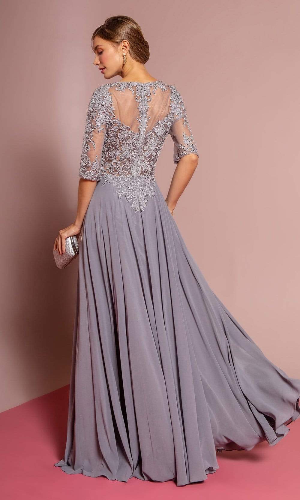 Capture that timeless elegance in this gorgeous Elizabeth K GL2681 masterpiece. Intricately designed with a spectacle of intricate embroidery mingling with shimmering jewels, this ensemble flourishes an illusion bateau over a sweetheart neckline. Framed with sheer half sleeves and an ornate illusion back, the chiffon skirt flutters softly as it cascades into a sweep of train. Make a lasting impression in this fascinating Elizabeth K masterpiece.
