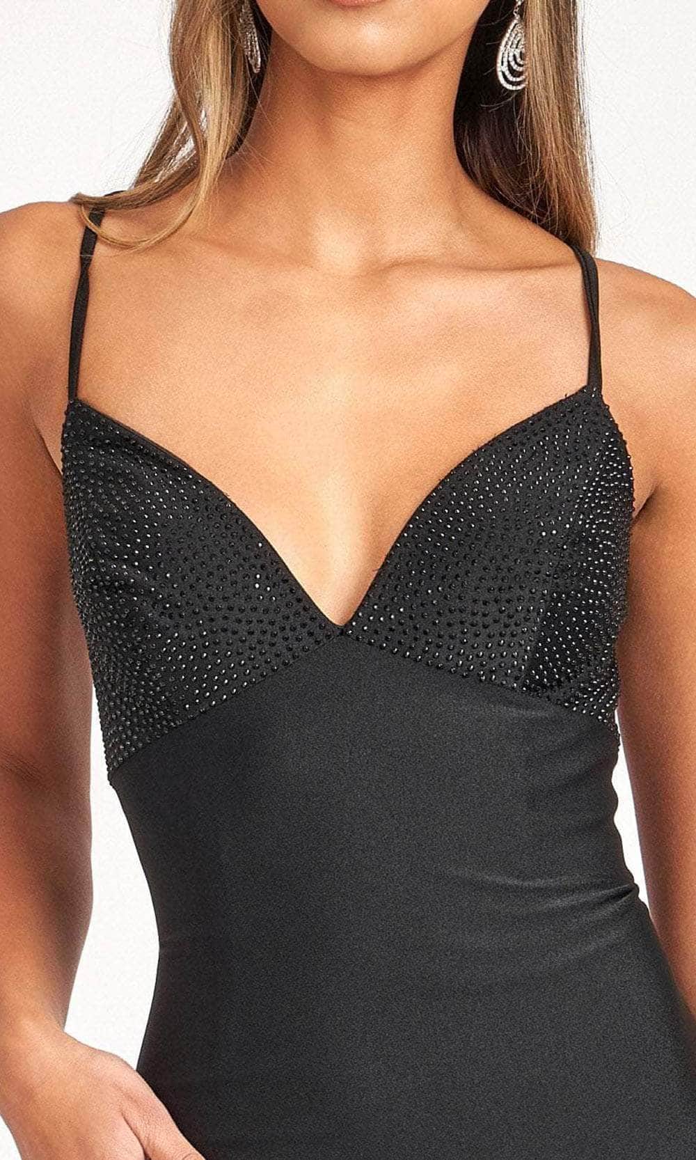 Intrigue everyone with the remarkable detail of this Elizabeth K GL3035 creation.  Stunningly sprinkled with rhinestone accents on the bust, this stunner parades a plunging  v-neckline with spaghetti straps. Thin straps crisscross into a lace up design. Perfectly sculpted with tailoring lines, the mermaid skirt skims along the feminine form and flares into a sweeping train. Enchant everyone with the tantalizing beauty of this Elizabeth K masterpiece.