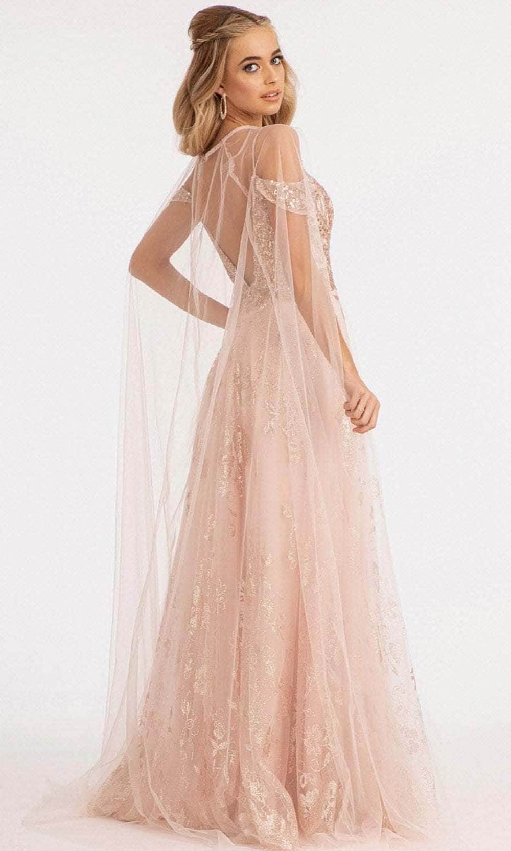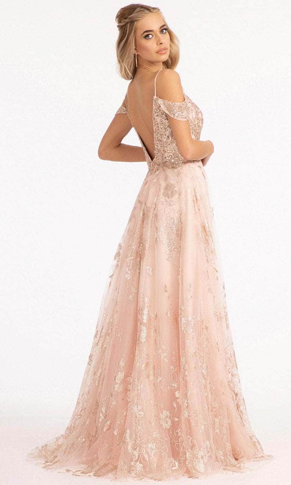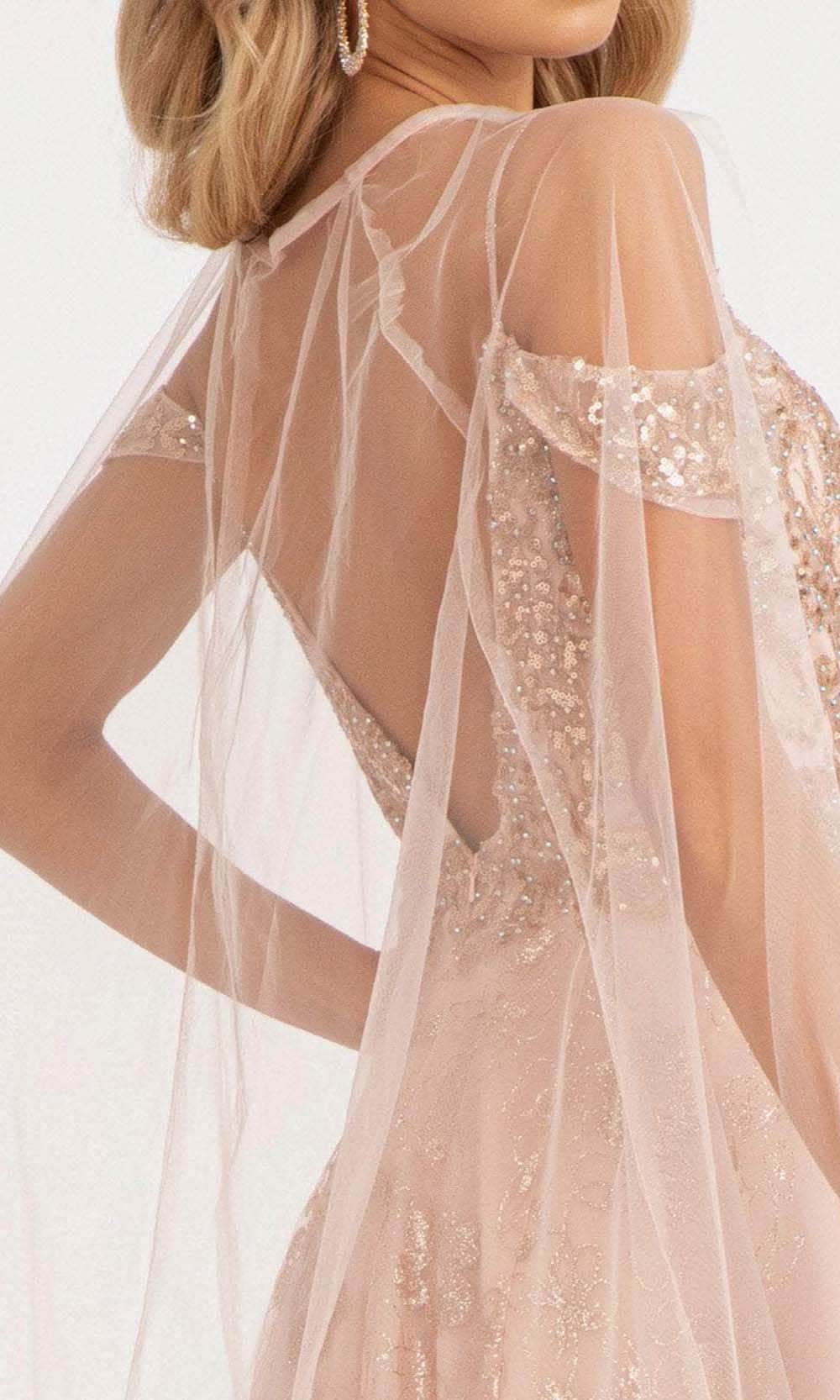Create a perfect evening wearing this elegant formal dress from Elizabeth K GL3070. Increase the glitz and shine to your ensemble! Make a statement in this stunning mesh A-line dress, which is embellished with intricate embroidery and sparkling sequin embellishments. The illusion V-neckline with cut-off shoulder adds a whimsical touch, while the wide open V-back creates a classy impression. A sweep train finish completes the A-line skirt. Fall in love when you slip on this Elizabeth K creation.