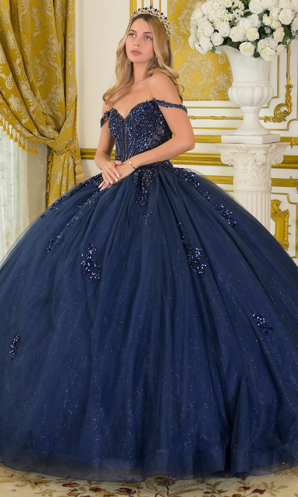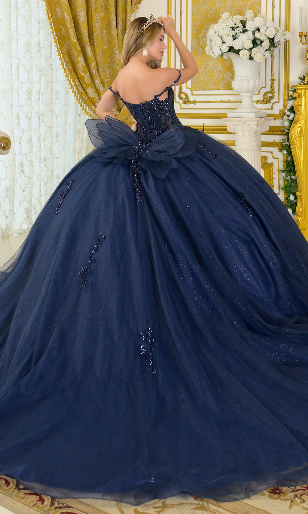 With its captivating design, the Elizabeth K GL3712 gown brings a touch of luxury to any grand setting. The illusion plunging V-neckline and off-shoulder sleeves are complemented by delicate embellishments that trace the bodice with artistry. Intricate beadwork and sequins create texture and sparkle, while the structured corset design ensures a graceful form. The flowing ballgown skirt and detachable butterfly accent at the back deliver a powerful finish, making Elizabeth K GL3712 an unforgettable vision of sophistication. Models are wearing Burgundy, and Navy colors.