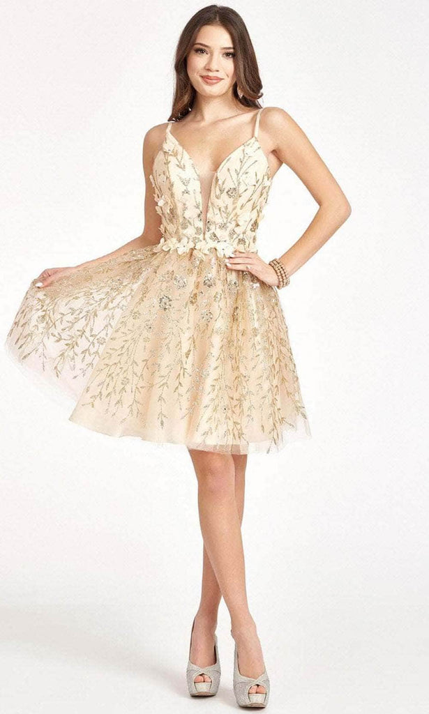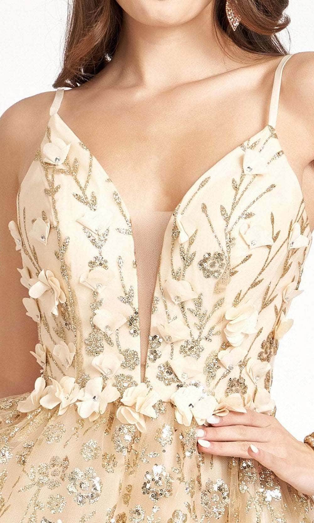 Lavish in the mesmerizing glamour as you wear this cocktail dress from Elizabeth K GL1998. Features a sleeveless Deep V-neckline with mesh inset for modesty, as the back shows off a classy lace up closure for a perfect fit. The dress is fully lined, and with floral appliques and embellishments, you're sure to give life at the party! Expect to be turning heads while wearing this gorgeous Elizabeth K masterpiece.