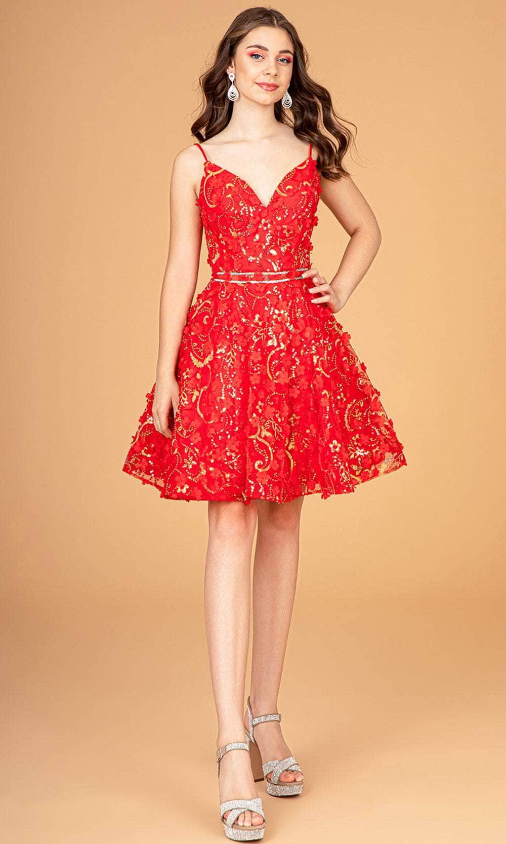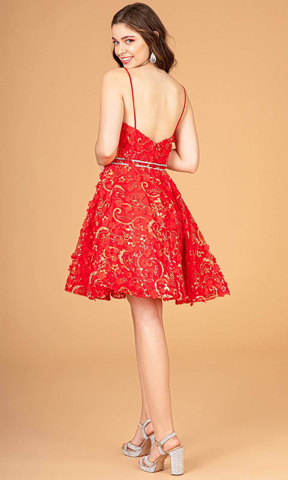 Be bestowed the title of a belle in this Elizabeth K GS3090 masterpiece. Studded with floral appliques accenting the lace fabric, this dress flatters with a sweetheart neckline and mid-open back. The waistline of this faux two-piece is adorned with shimmering jewels, drawing attention to your hourglass figure. Stringed with spaghetti straps, the back closes with a zipper on the center while the A-line skirt flourishes a soft flare that ends in a short hemline. All eyes will be on you when you look so dainty in this Elizabeth K GS3090 creation. Models are wearing Baby Blue, Purple, Red, and Yellow colors.