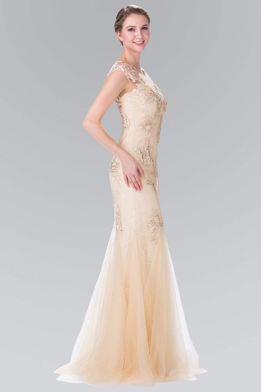 Indulge in sophistication and poise when you slip on this gorgeous Elizabeth K GL2276 creation. Stunningly embellished with a sheer lace fabric graced by beaded embroidery, this immaculate piece flaunts a bateau illusion over a sweetheart neckline and a mesh ornate full back. Sculpting from the hips down to the mid-thigh with finesse, the trumpet skirt then flares exquisitely down to a full-length hem. Gather appreciative glances at your event in this Elizabeth K masterpiece.
