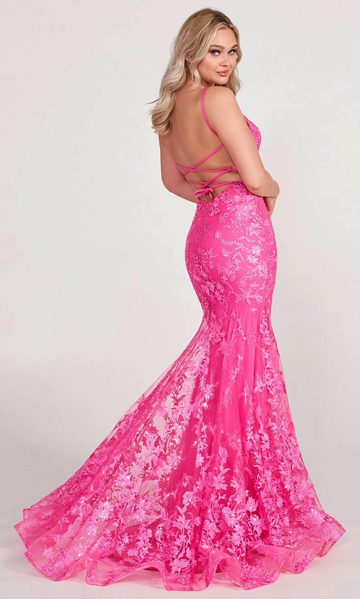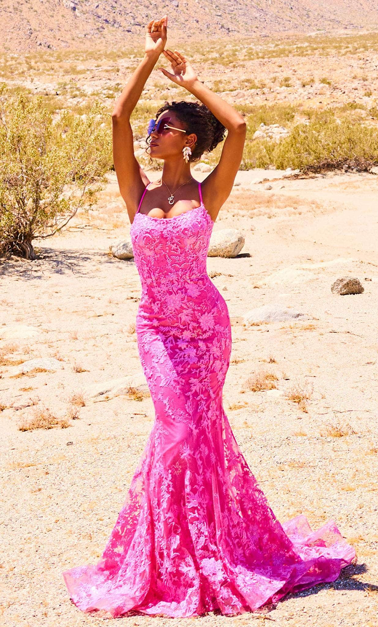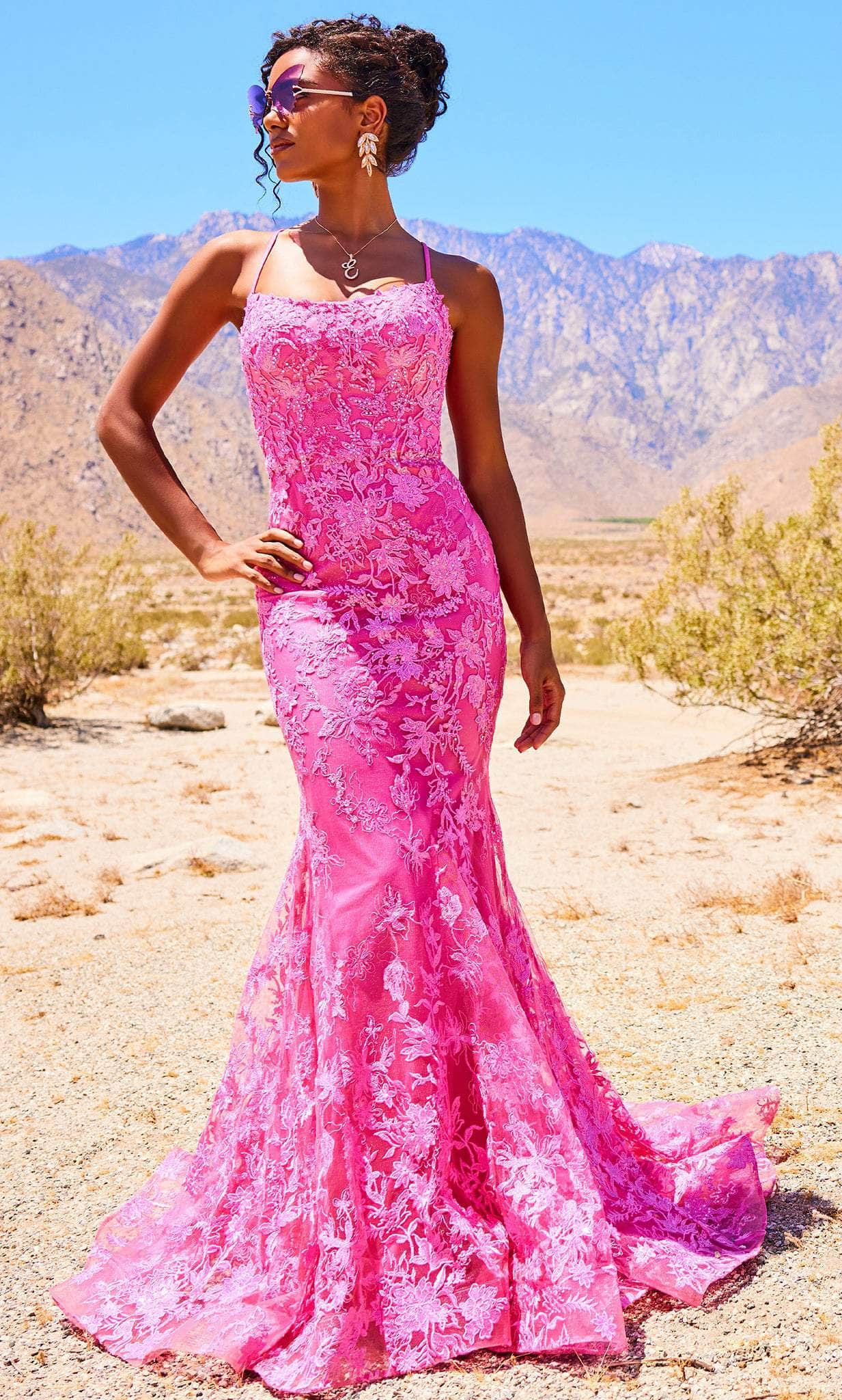 Make a statement when you wear this stunning Ellie Wilde EW34009 evening dress. This dress is tailored in jersey fabric with embroidered lace sequin and is adorned with stone accents. Features a sleeveless design with square neckline and is supported by spaghetti straps. The skirt has a floor length Mermaid silhouette and a natural waistline. The dress is finished off with a corset back. You are sure to create unforgettable romantic evening with this Ellie Wilde creation. The models are wearing Light Blue, Emerald, Ruby, and Cerise colors.