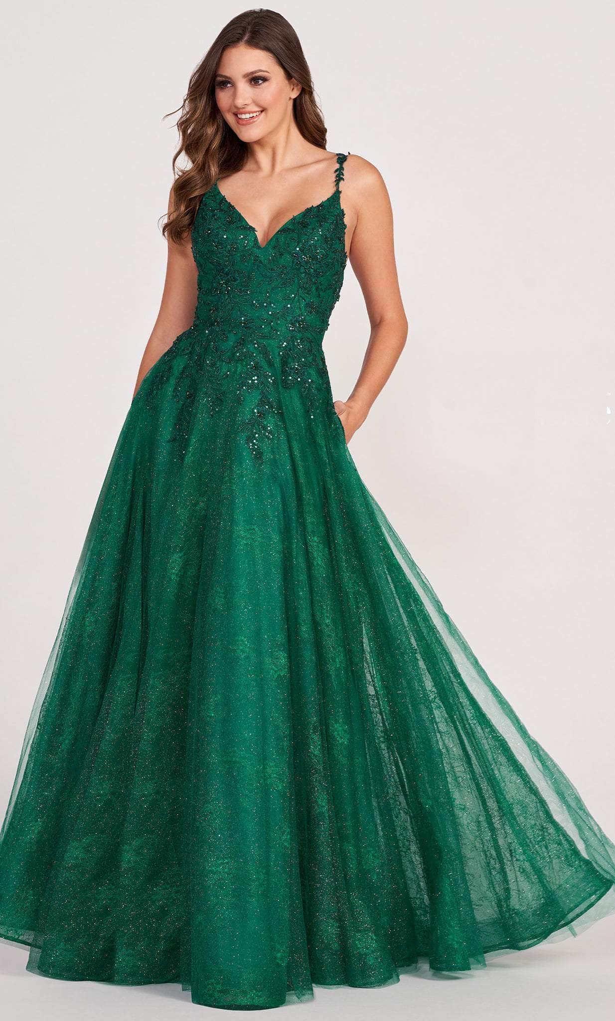 Exhibit exceptional style in this superb long gown by Ellie Wilde EW34086. This ensemble is beautifully made of lace all the way down its length and is adorned with lace applique and a crystal beading accent that adds more elegance to the outfit. The sleeveless bodice has a deep v-neckline, laced straps and a low open back. The skirt gracefully flares to a softly pleated A-line silhouette that cascades to a full length hemline. You are a breath of fresh air in this dreamy Ellie Wilde EW34086 creation. Models are wearing the Emerald, Navy, Light Blue and Magenta colors.