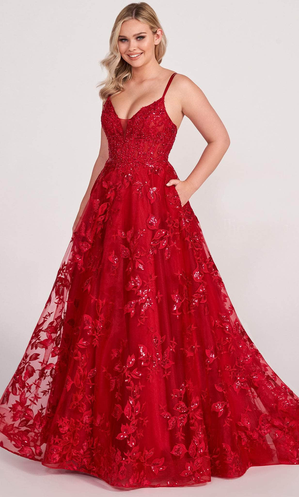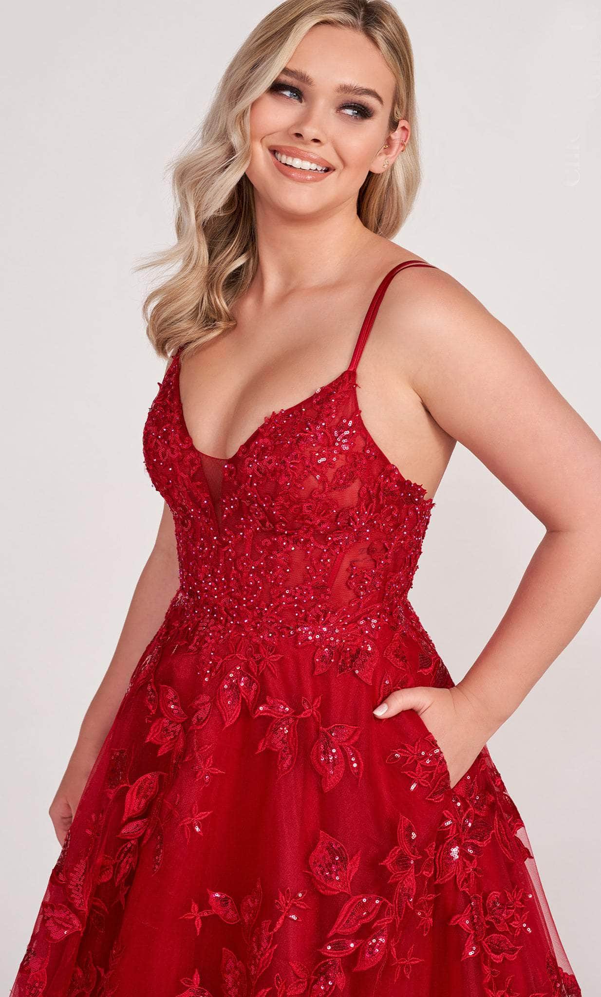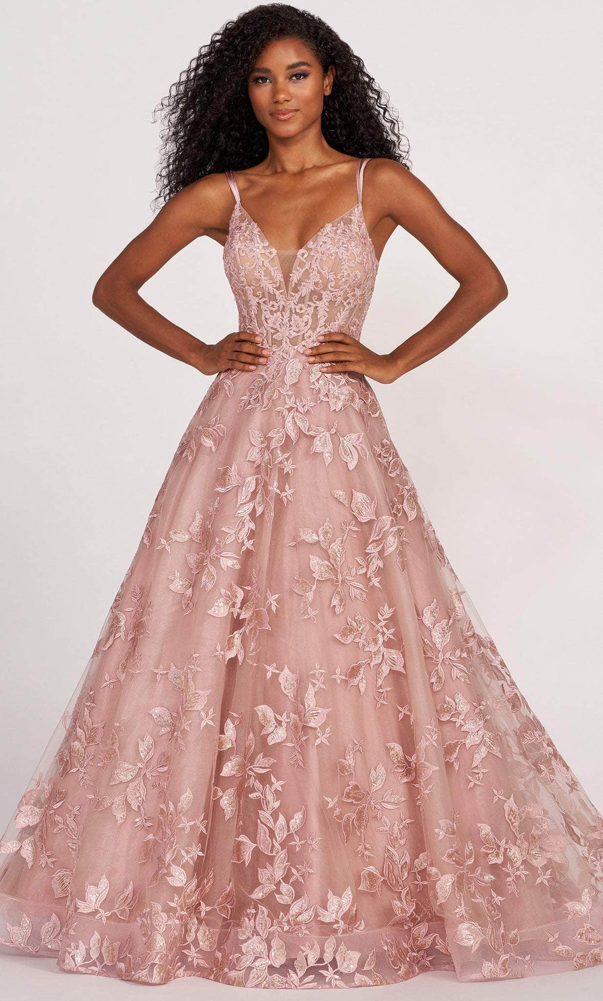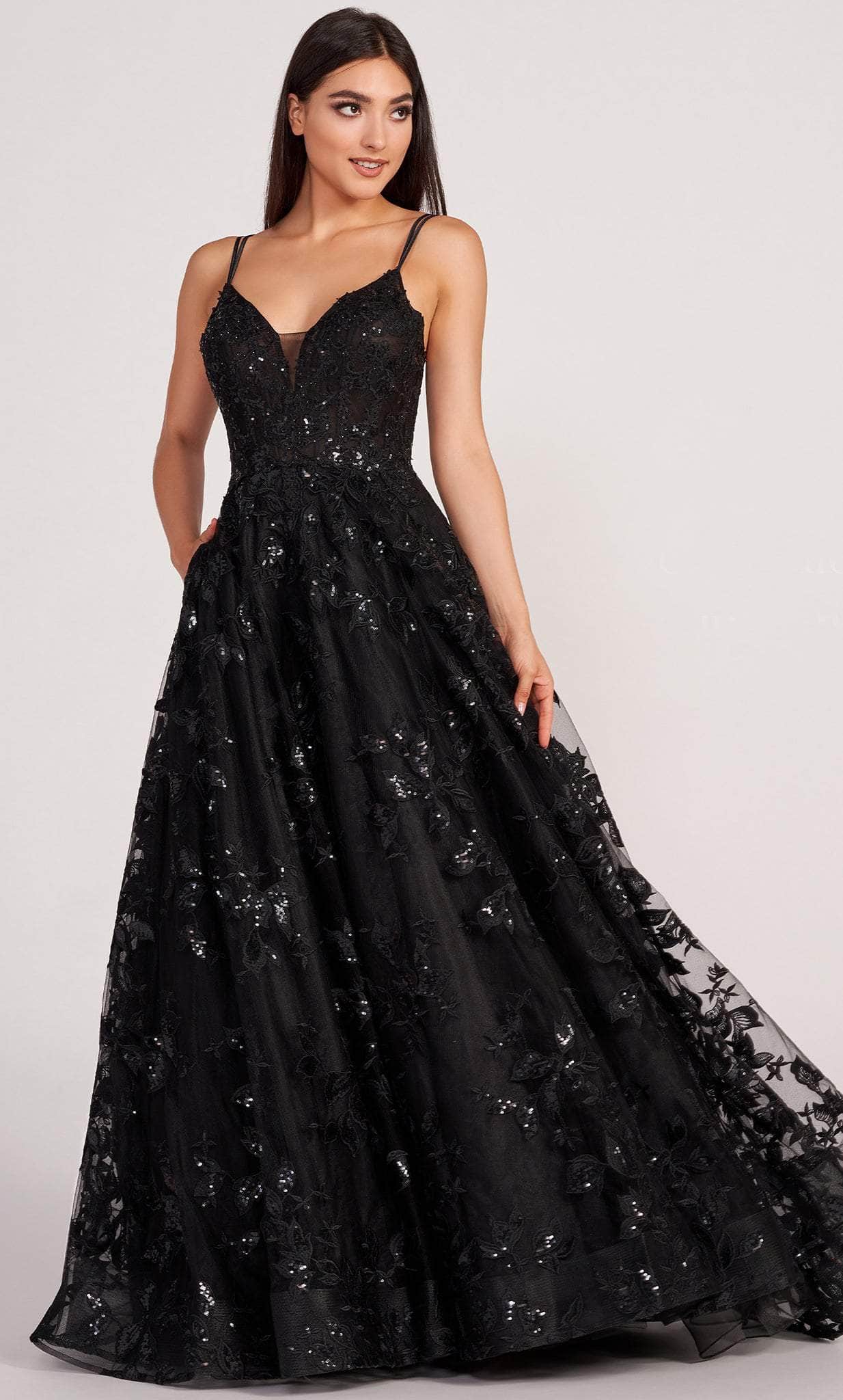 Capture that striking presence and get everyone's attention in Ellie Wilde EW34119. Walk with confidence while wearing this elegant dress that features a strapless, spaghetti strap and v-neck neckline with a sheer panel. Everyone will be envious of you as this dress has side pockets that every woman loves. The flower embroidery with sequin and beads designed adds up to the beautifulness of the gown. Ellie Wilde EW34119 is sure to be an attention-grabber on any occasion. Models are wearing Black, Navy Blue, Wine and English Rose colors.