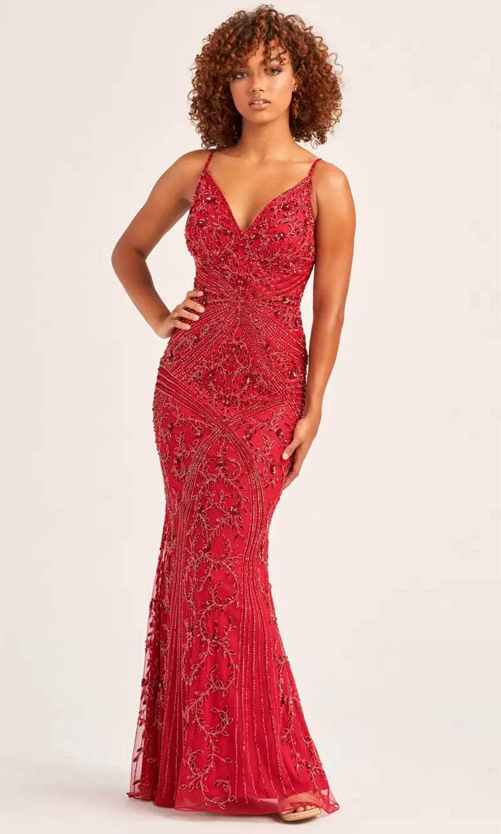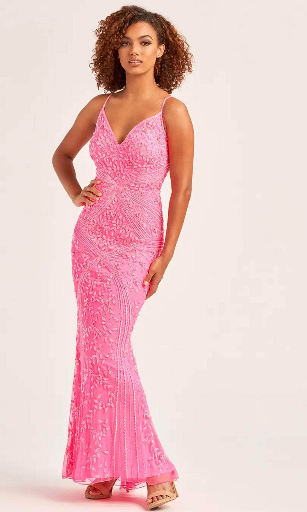 Immerse yourself in the pinnacle of grace and glamour wearing the Ellie Wilde EW35065 evening gown. This dress boasts a sophisticated V-neckline gracing a figure-flattering, sleeveless bodice, accentuated by delicate thin straps for extra support. Completely adorned with embellishments, it radiates allure from every angle. The enticingly open back, enclosed gracefully with lace, offers an elegant and refined finish. With its fabulous sheath silhouette evident in its full-length design, this masterpiece ensures you stand out effortlessly. Let them fall for you in this Ellie Wilde EW35065 creation. Models are wearing Misty Blue/White, Hot Pink, and Wine colors.