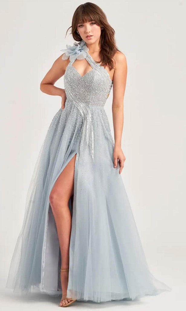 Ellie Wilde EW35086 is a stunning prom gown adorned with glistening beads and stones for a radiant allure. The one-sleeve fitted bodice, featuring a sweetheart neckline, is adorned with a wide asymmetrical strap in both the front and the open back, adding a modern touch. The floor-length skirt, accentuated with side pockets, gracefully parades in an A-line silhouette, showcasing a chic high slit. This Ellie Wilde EW35086 creation seamlessly blends glamour and contemporary design, ensuring a captivating and memorable presence on any special occasion with its exquisite detailing and chic sophistication. Models are wearing Misty Blue and Black/Gunmetal colors.