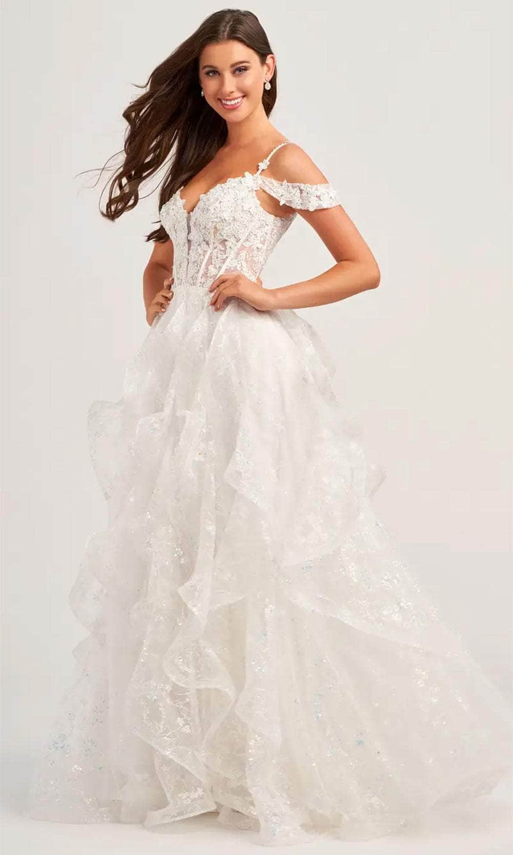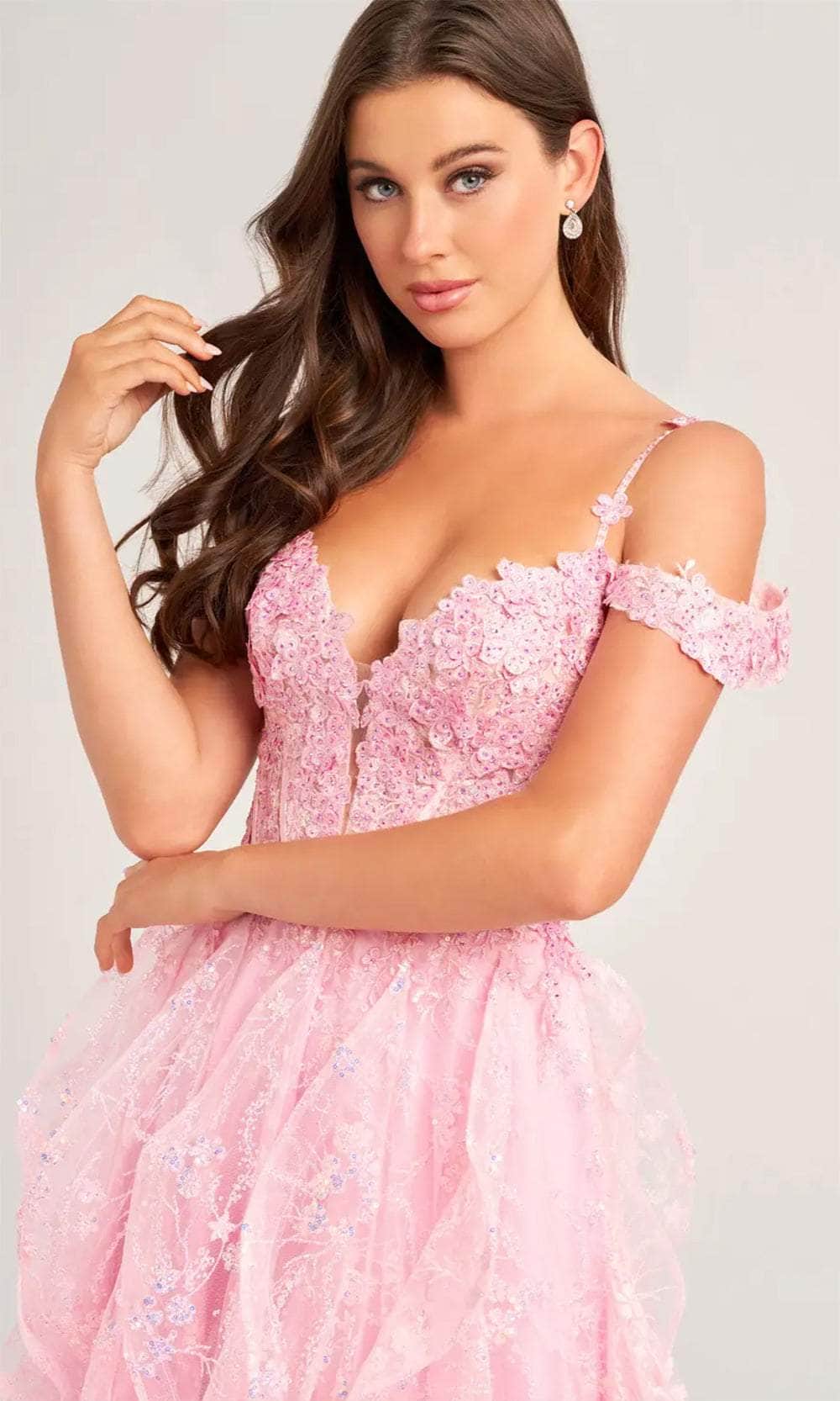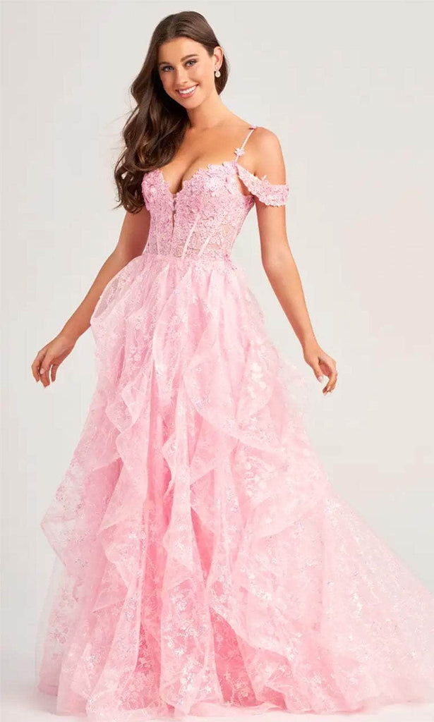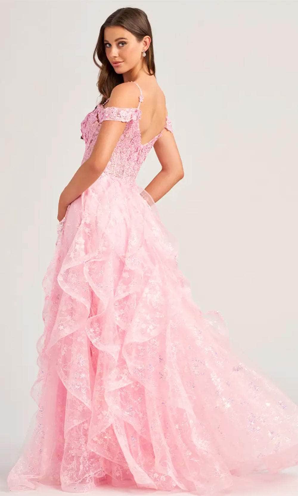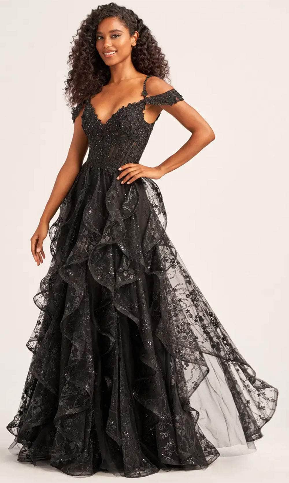 Leave them spellbound in the enchanting Ellie Wilde EW35218 evening gown. The dress showcases a captivating plunging sweetheart neckline, complemented by charming detachable draped off-shoulder straps. Adding to its allure is the cold shoulder feature adorned with delightful thin straps. The top is adorned with lovely floral applique designs and a sheer inset, while the mid-open back is elegantly secured by a zipper, giving it a polished finish. The majestic ruffled A-line skirt gracefully extends to the floor, boasting a glamorous sweep train that adds a touch of elegance. Embrace your inner princess with this captivating Ellie Wilde EW35218 masterpiece. Models are wearing Pink, Black, and White colors.