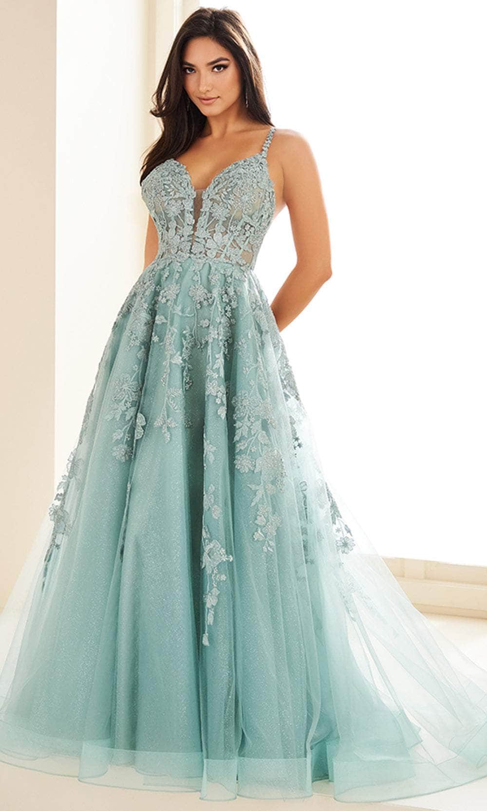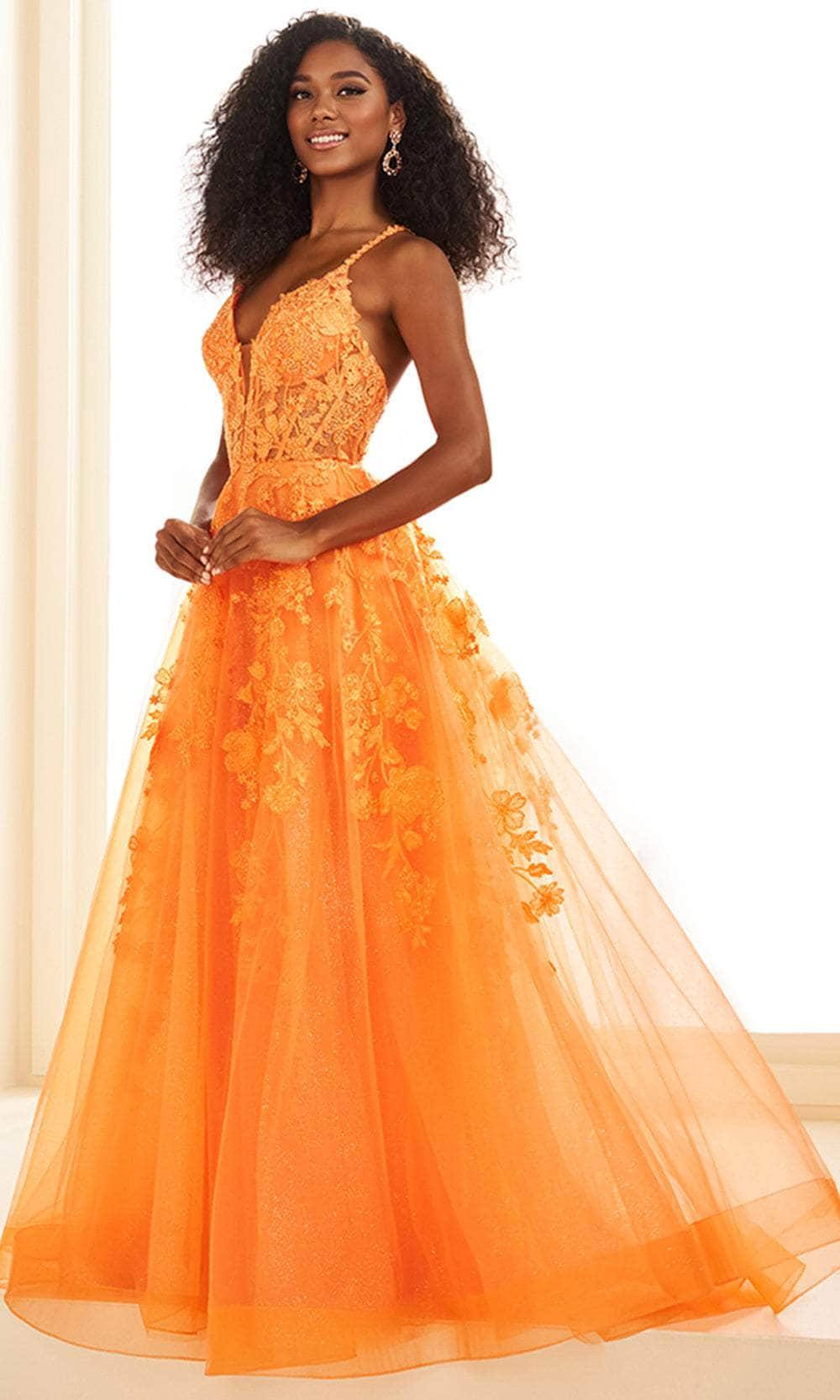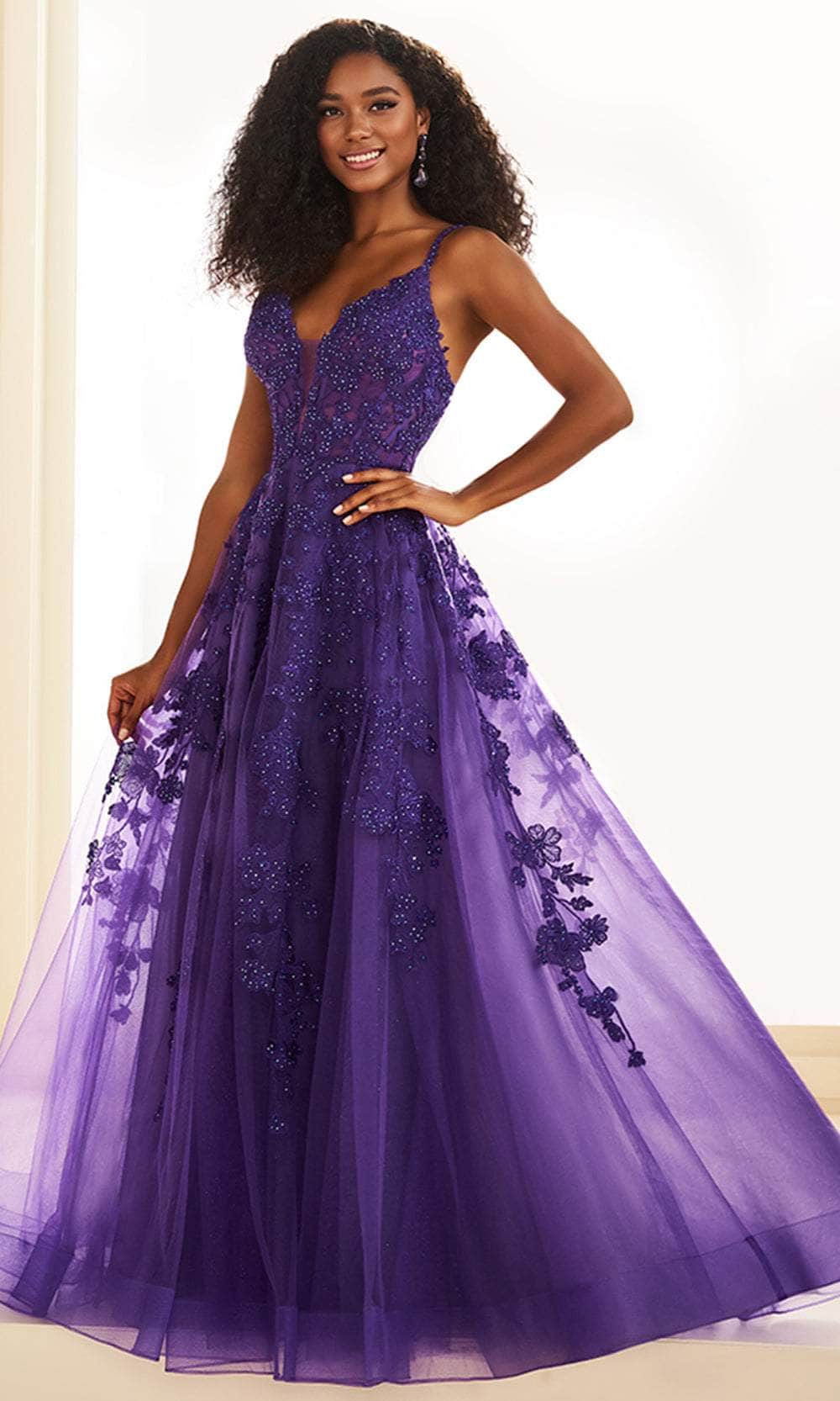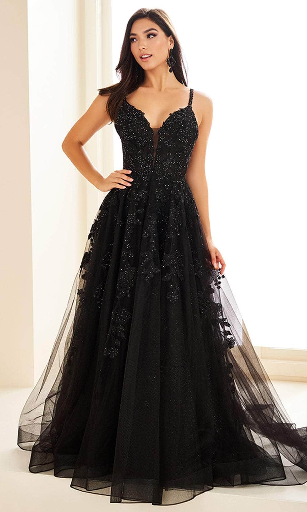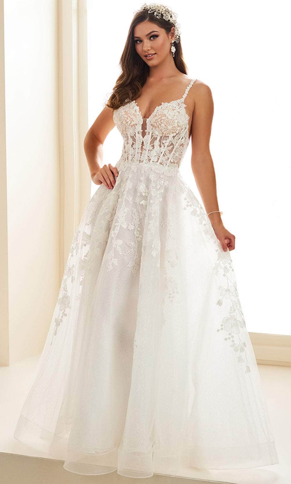 Embrace your inner princess in the dreamy Ellie Wilde EW36015 masterpiece. The floral lace appliques and bead detailing in this sleeveless dress create a mesmerizing and romantic appeal. It shows spaghetti straps and illusion corset boning bodice that offer great support. The plunging v-neckline is perfectly paired with low-cut open back. The side pockets are included ideal for keeping your essentials close at hand. Attractively carved in an A-line silhouette, the skirt flatters all curves and finishes in a sweeping train with horsehair hem. Make a memorable entrance in this Ellie Wilde EW36015 creation. Models are wearing Ivory, Purple, Black, Orange, Sage, Magenta, and Strawberry colors.