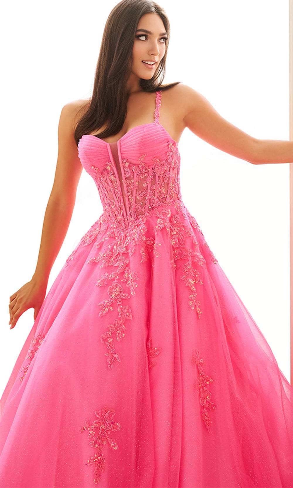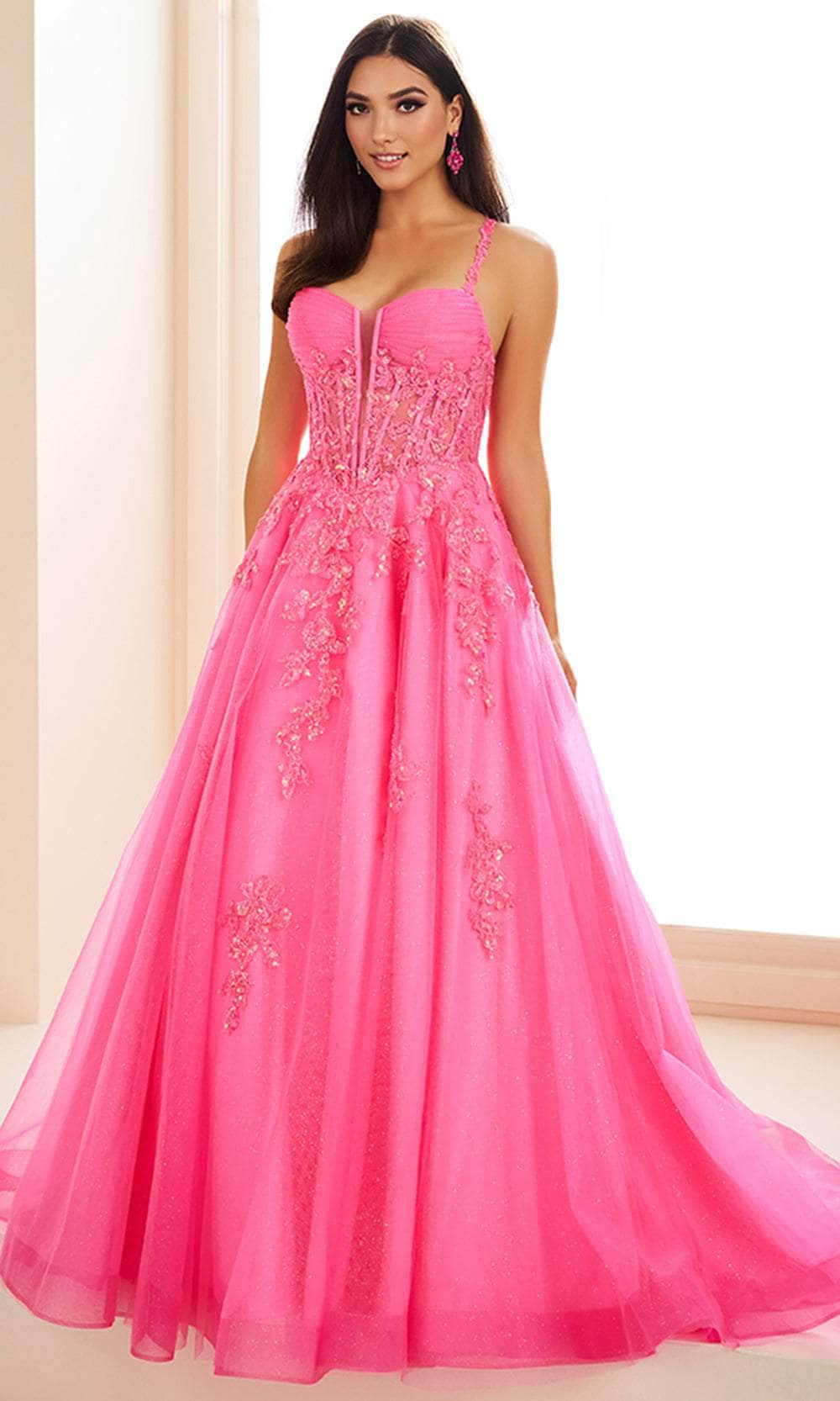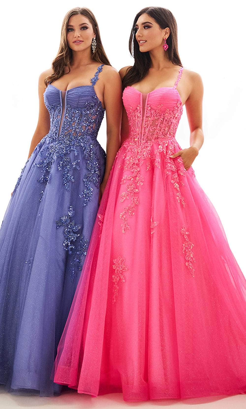 Prepare for an evening brimming with magic in this Ellie Wilde EW36202 masterpiece. A lovely floral pattern of embroidery with beads and sequins decorates this eye-catching sleeveless gown. Thin straps highlight the shoulders and connect to the open back, creating a striking crisscross pattern. Other features are the plunging v-neckline, illusion corset boning bodice and an exceptional pleated design in the bust. The skirt carves an A-line silhouette that gracefully descends into a sweeping train. A horsehair hem and stylish side pockets enhance the overall look. This Ellie Wilde EW36202 gown guarantees a perfect blend of comfort and style. Models are wearing Black, Dark Perwinkle, and Barbie Pink colors.