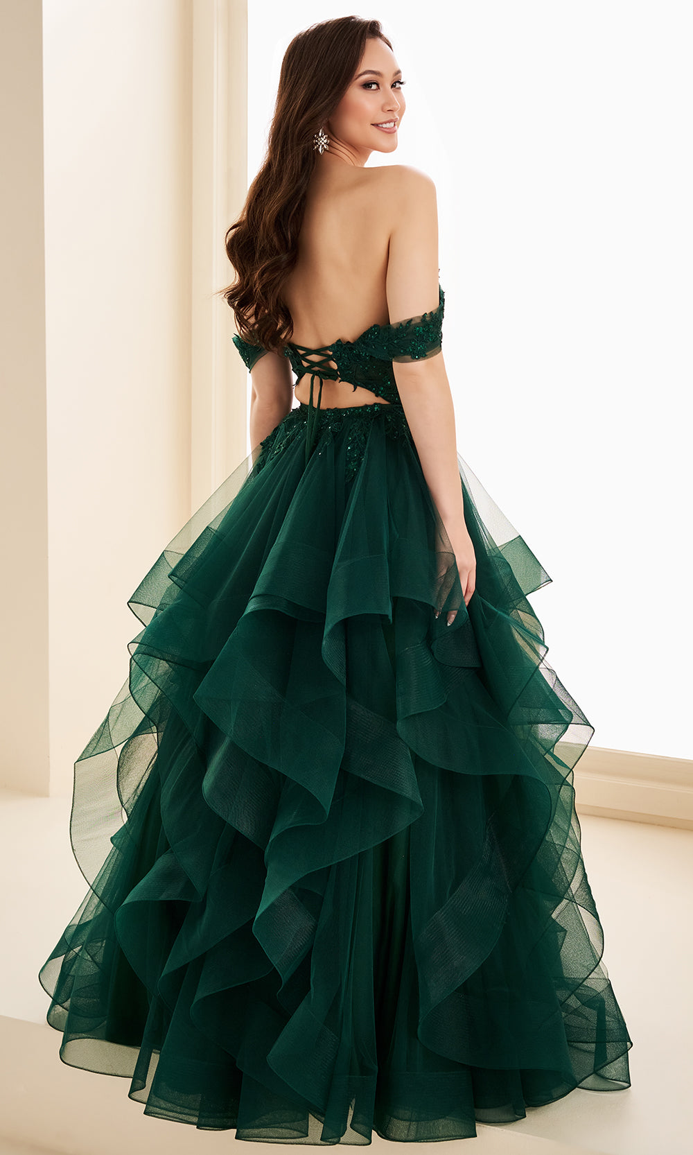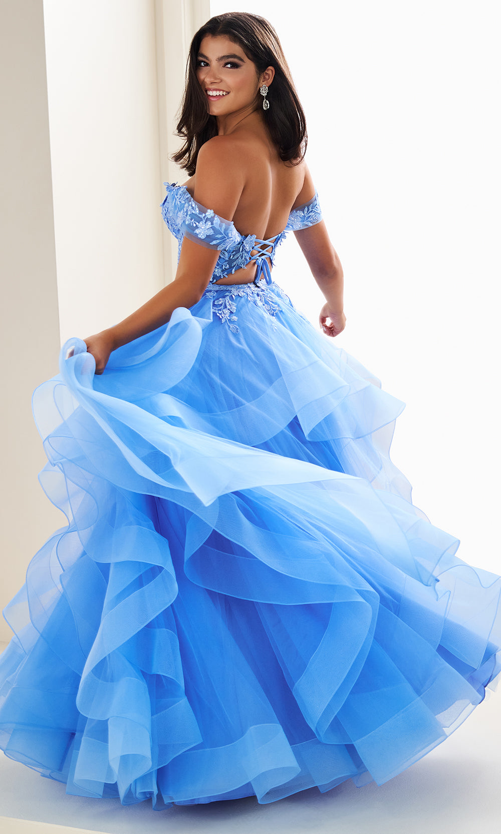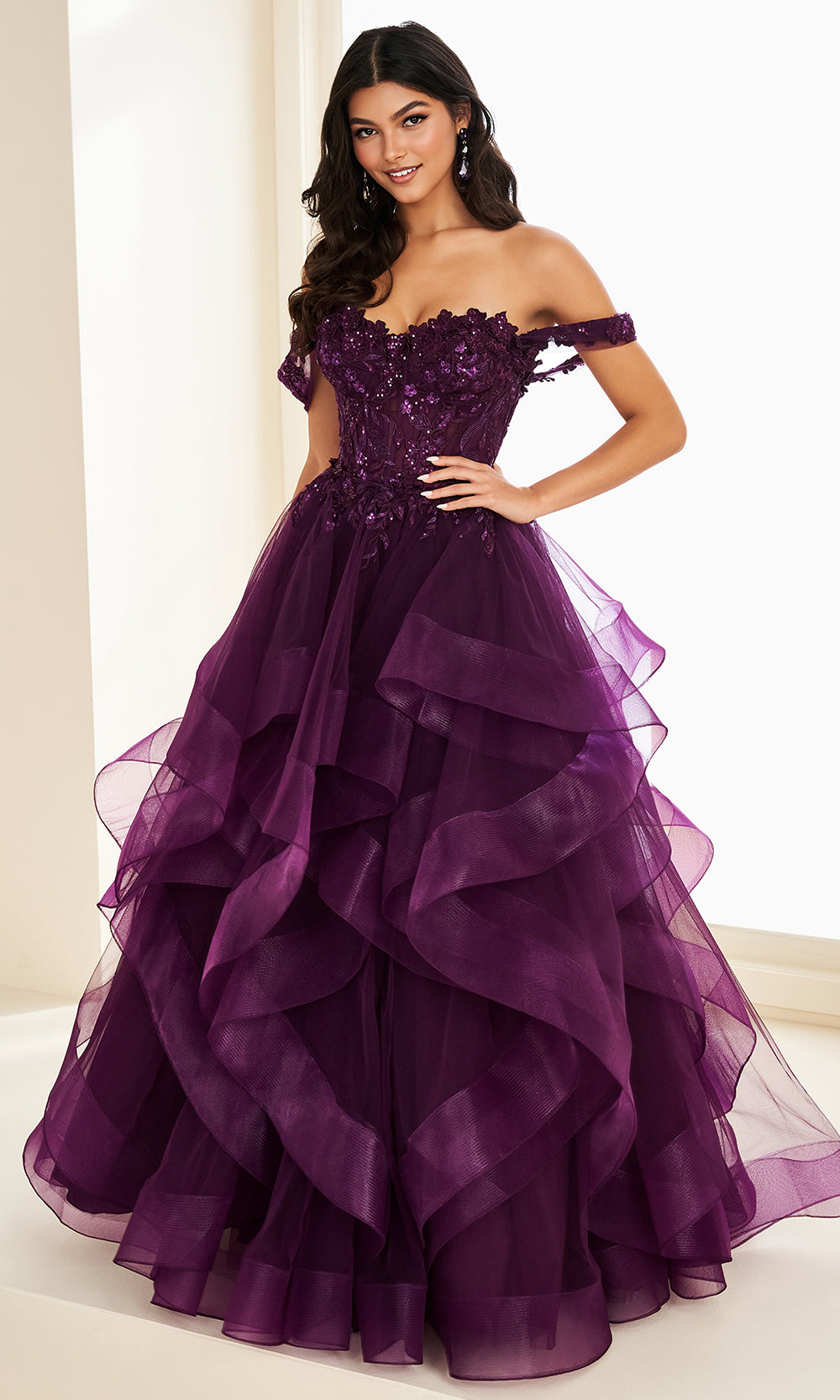 Feel the spotlight embrace you in Ellie Wilde EW37201, a gown crafted to define power, poise, and elegance. With its sweetheart neckline and sheer corset bodice you feel confident and poised, while the short mini length captures playful charm. The detachable long ruffle overskirt and detachable off-shoulder straps bring dramatic flair for a second look. Lace applique, shimmering sequins and 3D floral embellishments dance across soft tulle, complemented by a lace-up back to ensure a perfect fit. Choose Ellie Wilde EW37201 for that unforgettable event where you deserve to shine and celebrate in style. Models are wearing Emerald, Dark Plum, Navy, Wine, Bluebell, Cotton Candy, Lt.Blue, and Honeysuckle colors.