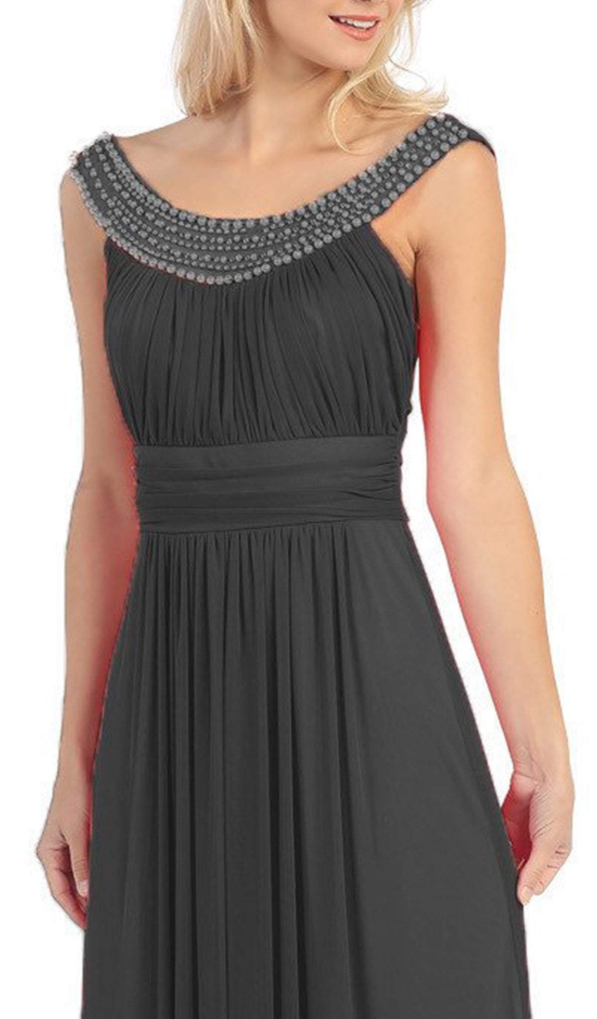| Details: | Chiffon Matte Jersey, Sleeveless, Pearl embellished neckline, Fully lined |