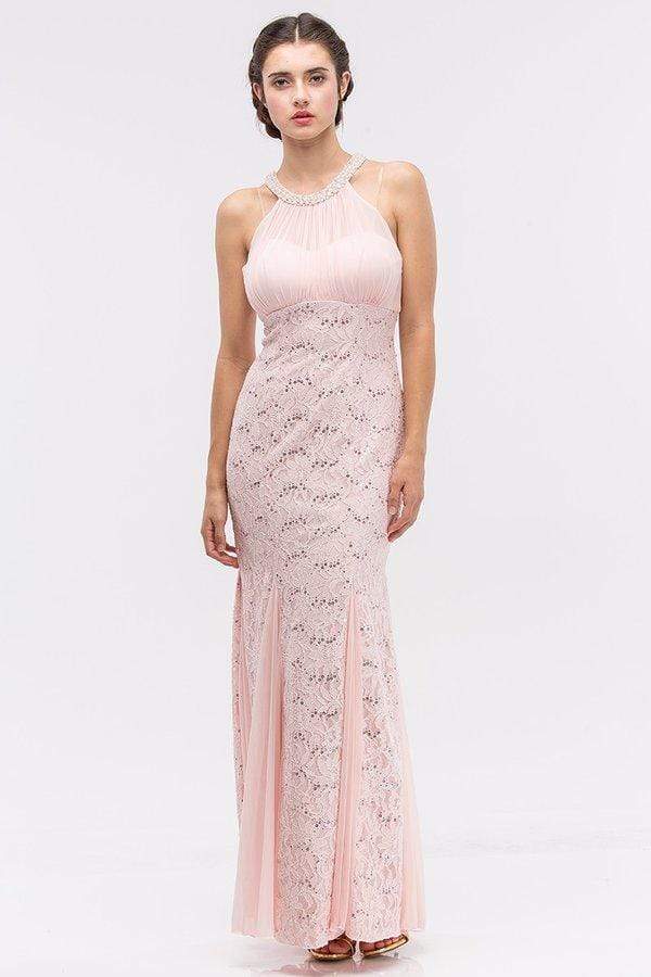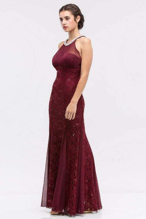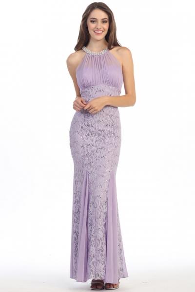 Capture that striking presence and get everyones attention in Eureka Fashion 5030. This lace dress fashions a halter neckline with a sweetheart lining. It has a flattering fitted bodice and a full length trumpet skirt. Orchestrate your moment to stand out in this Eureka Fashion dress.