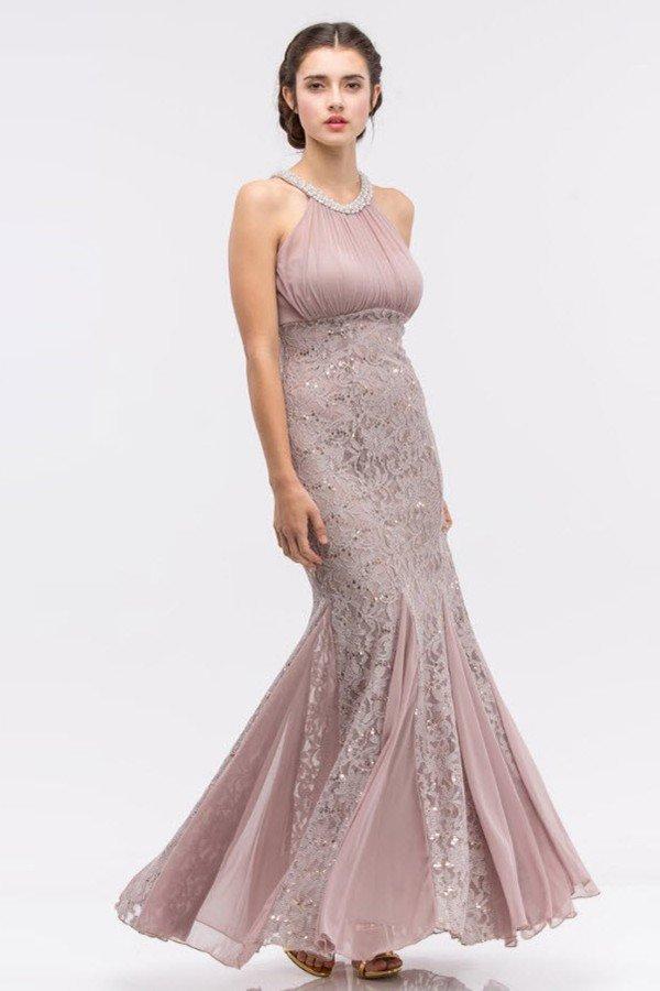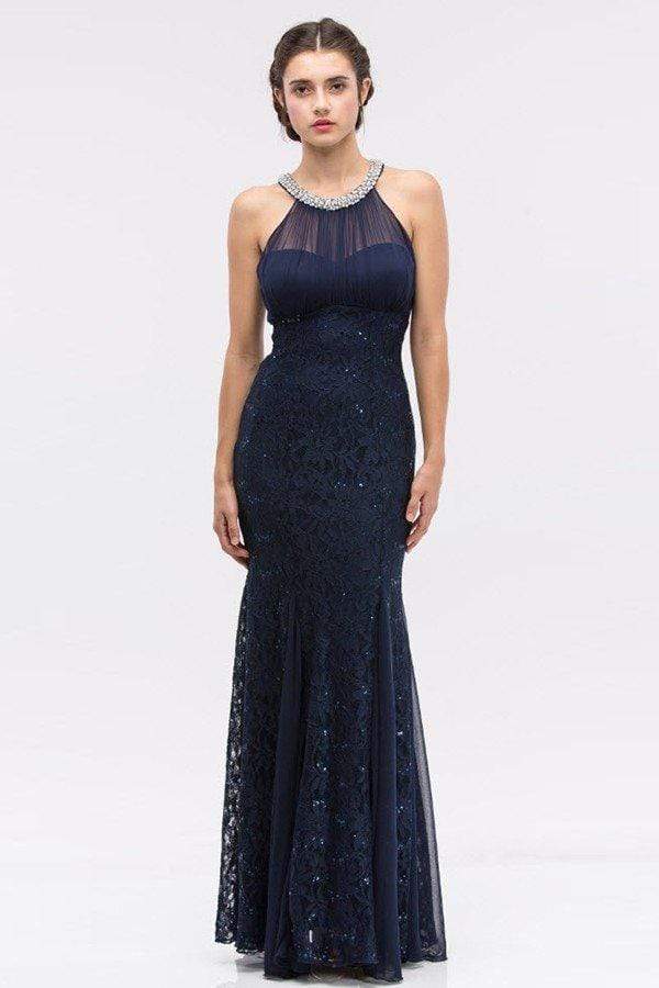 Eureka Fashion - 5030 Halter Neck Lace Trumpet Dress