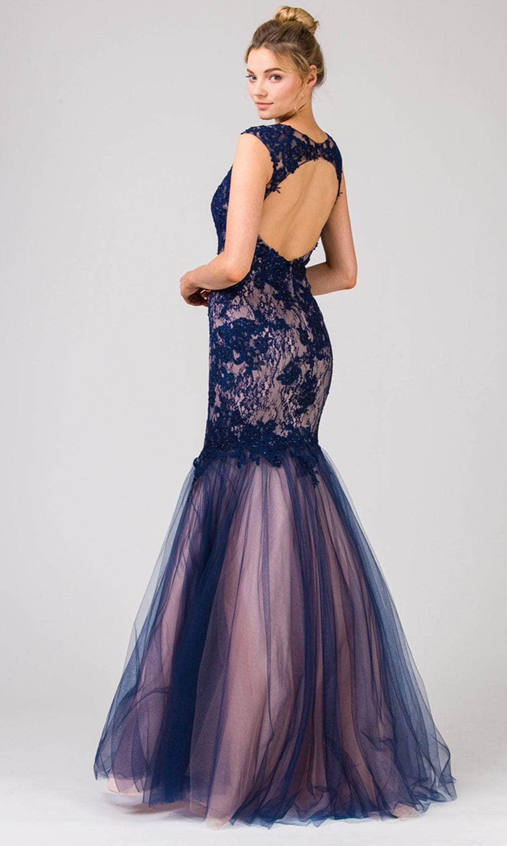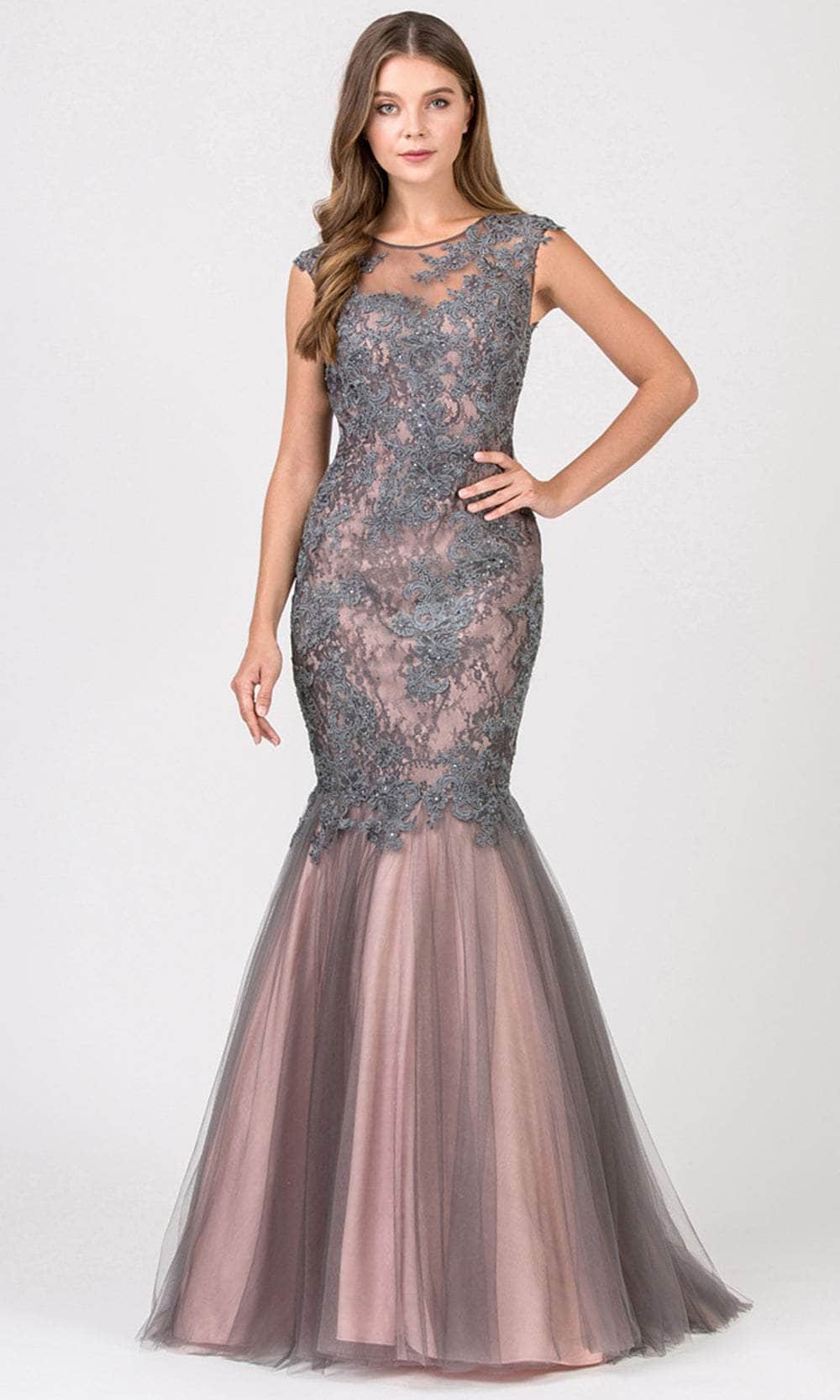 Get a glamorous look with this Eureka Fashion 8510, a vision of elegance and grace. Adorned with intricate embroideries, this gown features a sleeveless fitted bodice and a sophisticated jewel neckline. The cut-out detailed back adds a touch of allure, while the center zipper closure ensures a seamless fit. Below, the floor-length skirt cascades in a captivating mermaid silhouette, exuding timeless charm. Make a statement at any event in this enchanting ensemble from Eureka Fashion 8510. Models are wearing Navy/Blue and Charcoal/Blush colors.