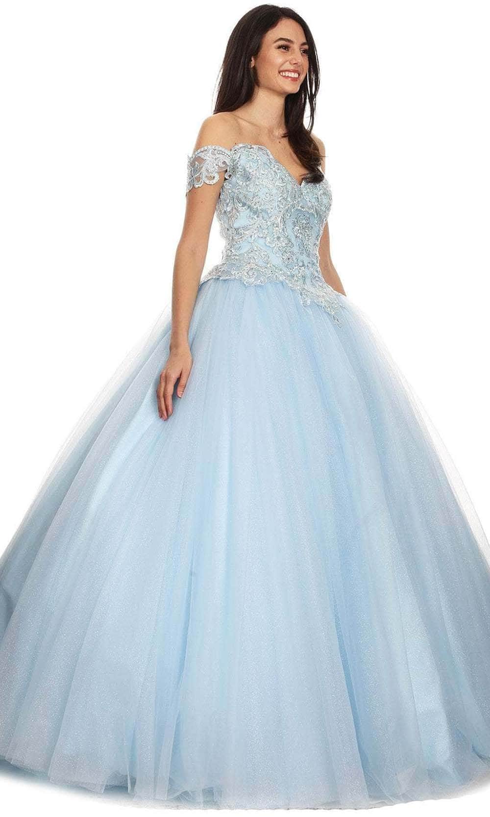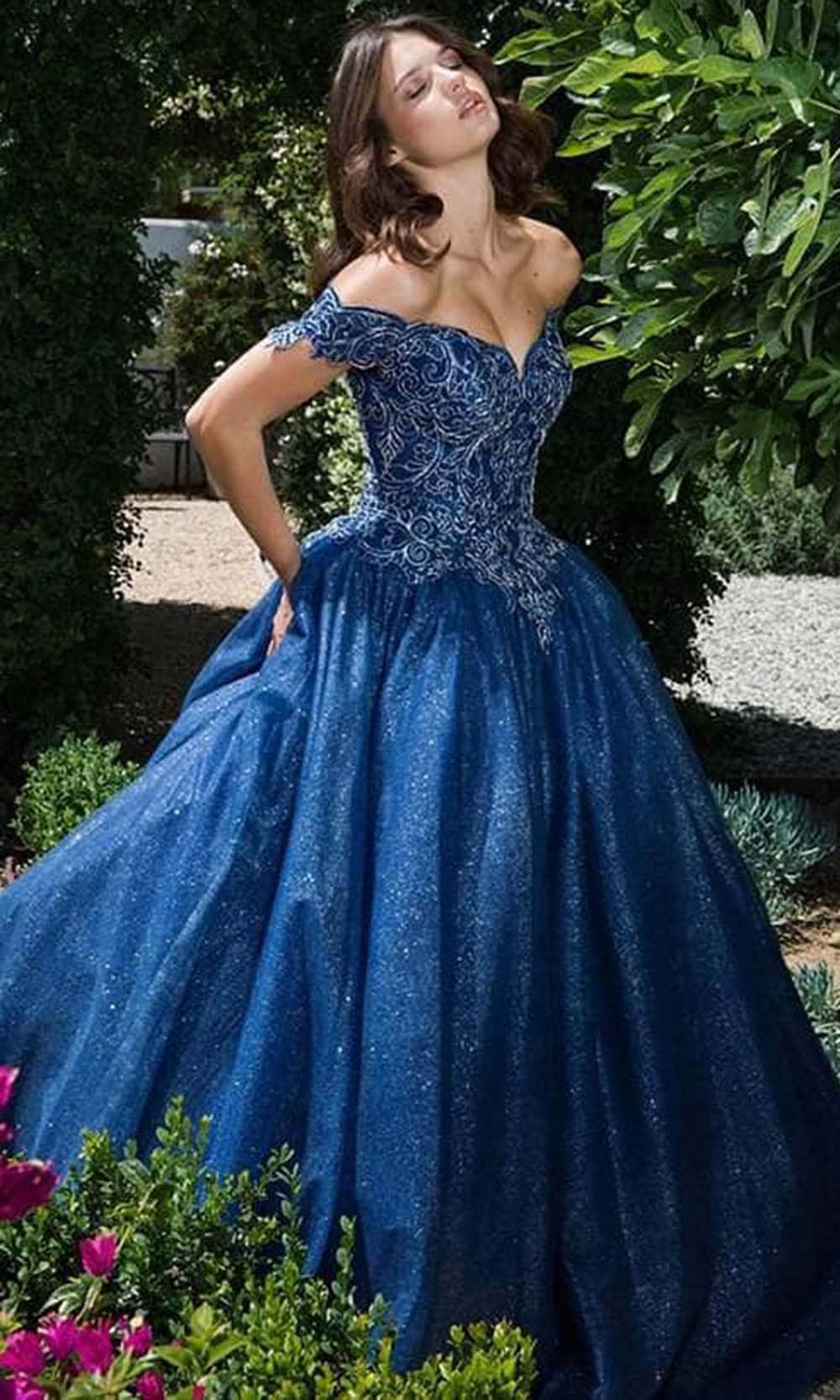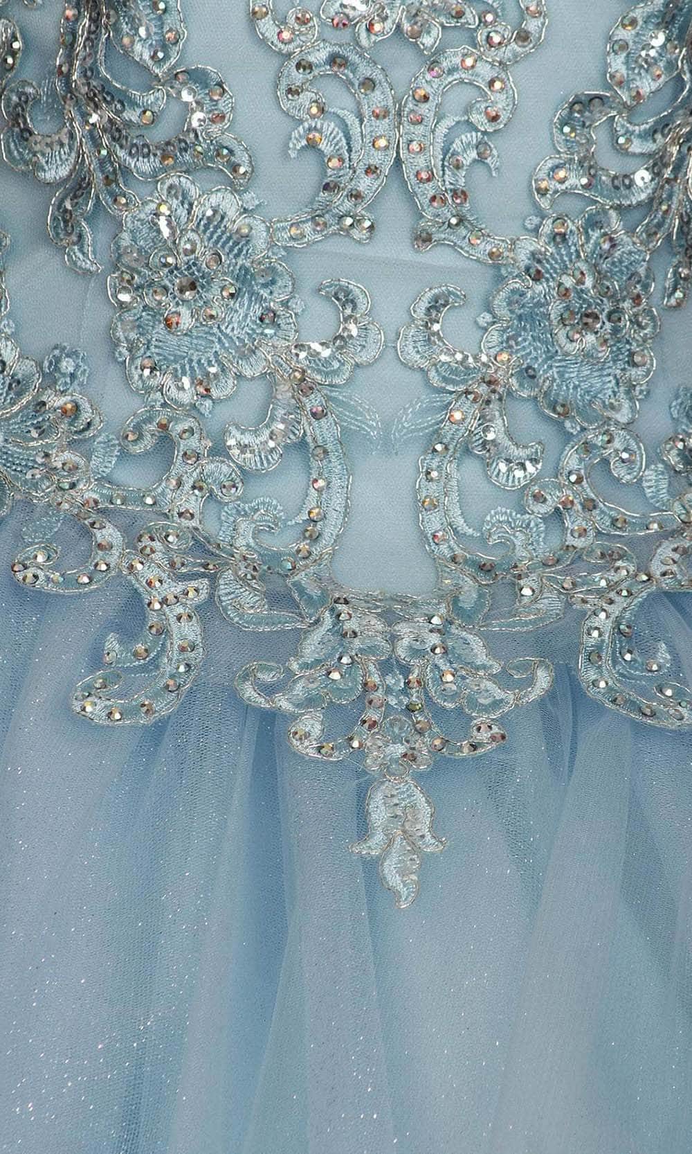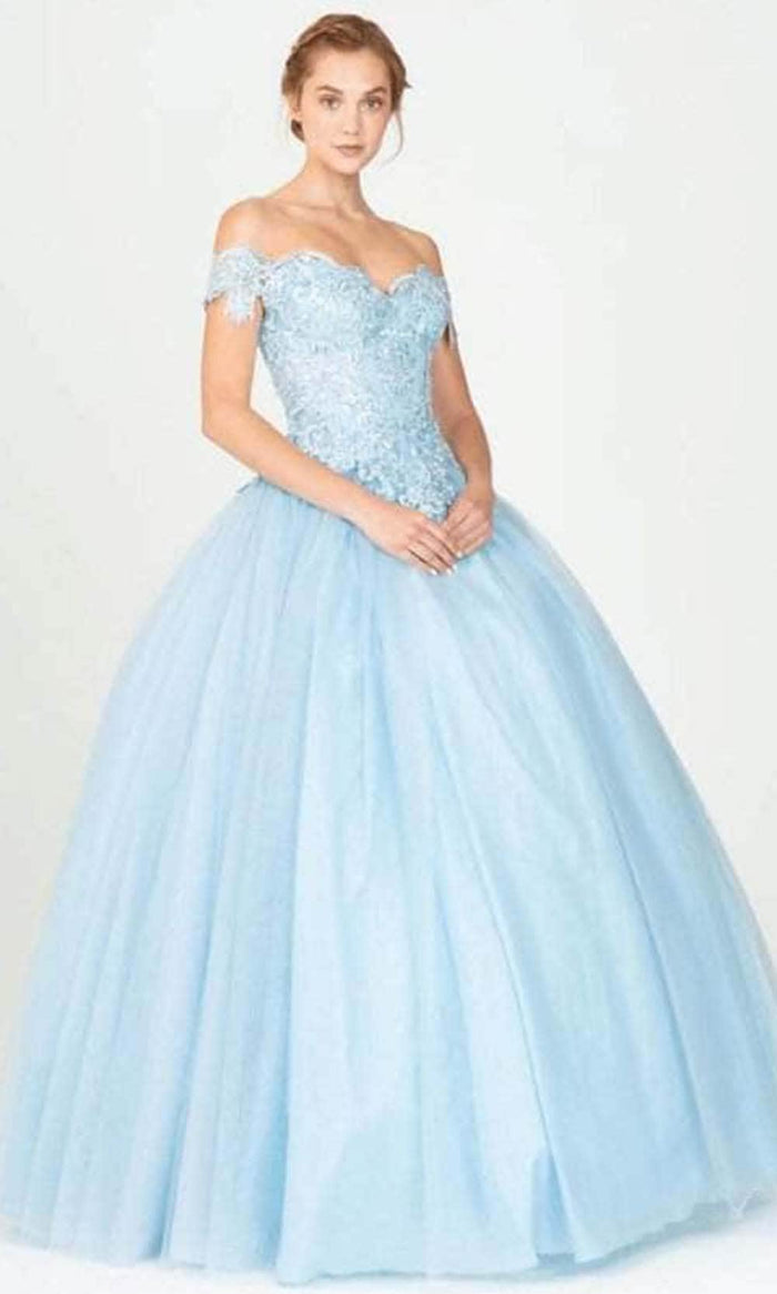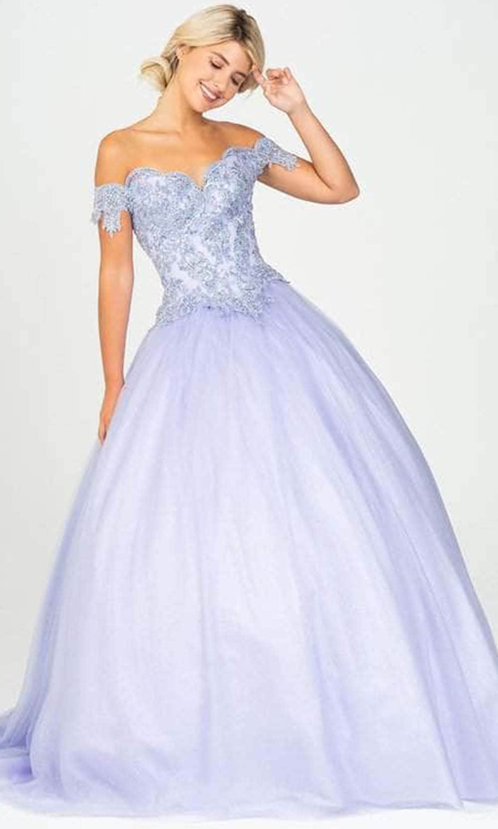 Be ready to catch everyone’s eyes when you wear this exquisite creation by Eureka Fashion 9300. This glittered ensemble fashions a sweetheart neckline with off-shoulder lace straps. Impeccable lace applique embroideries beautify the fitted bodice and accented sparkly sequins. From the basque waist flourishes a glittered mesh ballgown skirt finishing in a floor length hem. You'll be envied in this an unbeatable masterpiece from the Eureka Fashion collection. Models are wearing Lilac, Bahama Blue and Navy colors.