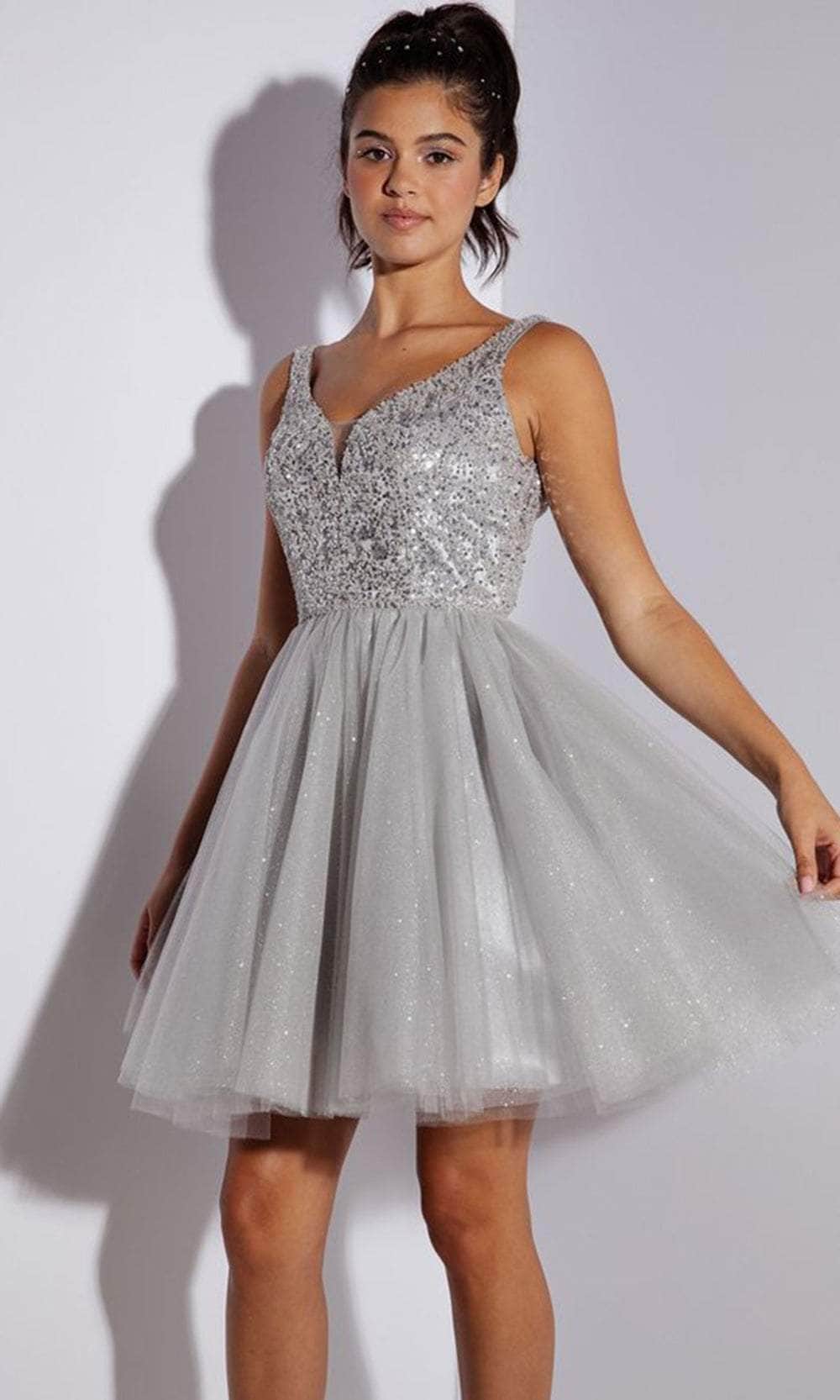 Prepare to captivate everyone at your next special event in this Eureka Fashion 9926 masterpiece. This sleeveless dress has a V-neckline with a sheer inset and is made of glitter mesh fabric. The bodice is adorned with glittering caviar beading and shimmering sequins, and the skirt cascades down in a mid-length A-line style. The skirt of this dress is made of glitter tulle for added glitz. When you wear this Eureka Fashion 9926 creation, you will look absolutely stunning. Models are wearing Champagne, Silver, White and Bahama Blue colors.