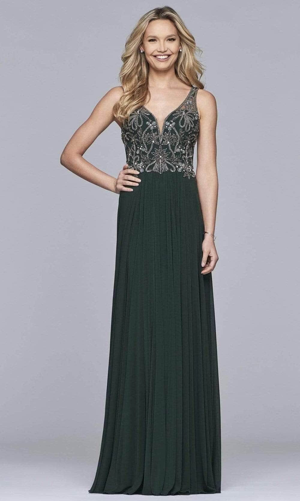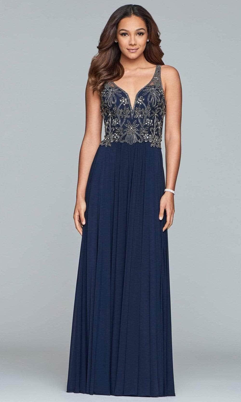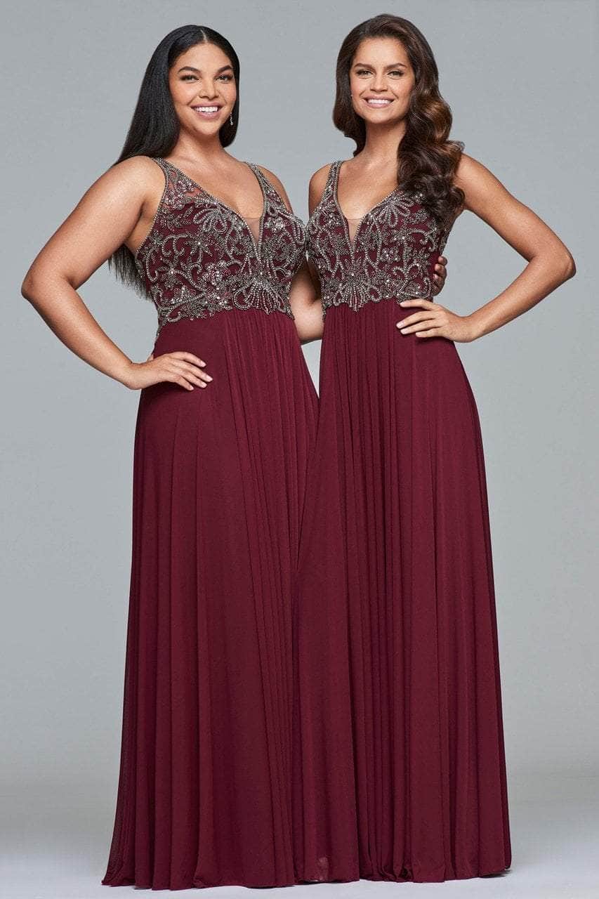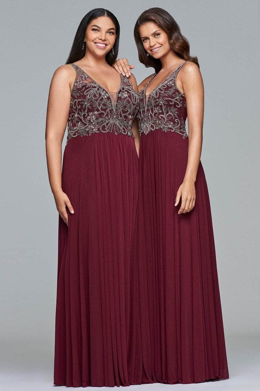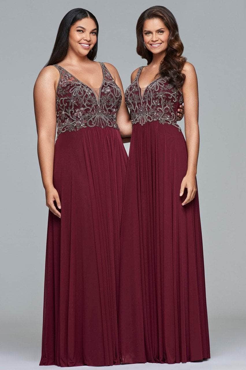 Showcase the intricate diversity in the design of Faviana 10017 with its V-neckline adorned with beautiful beading along both the neckline and back. The mesh fabric ensures comfortable movement and complements various body types. Elevate the look of this Faviana 10017 by accessorizing it with silver jewelry for an even more stunning appearance. Model is wearing Chianti color.
