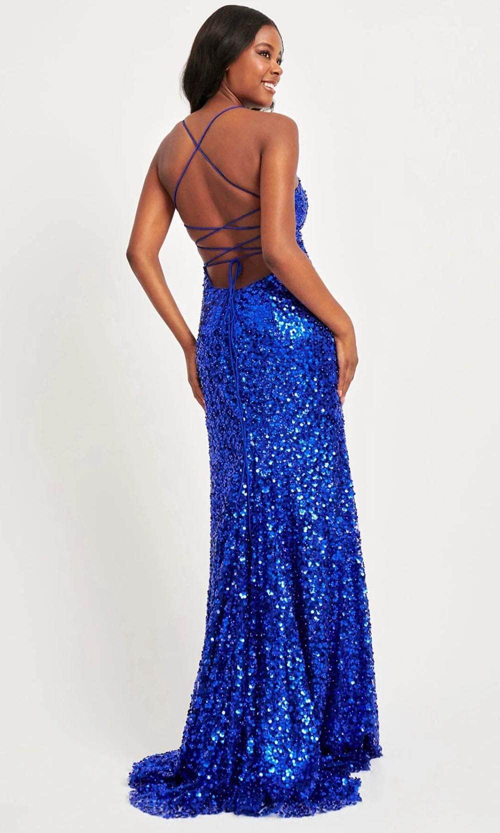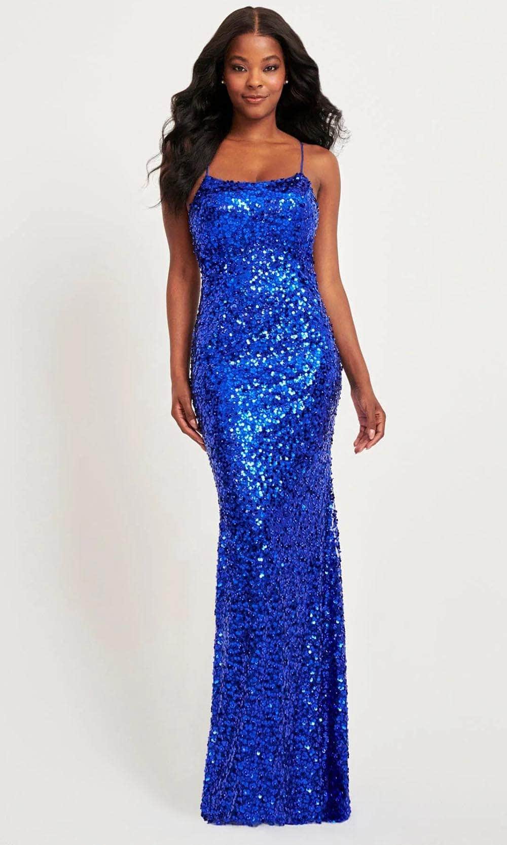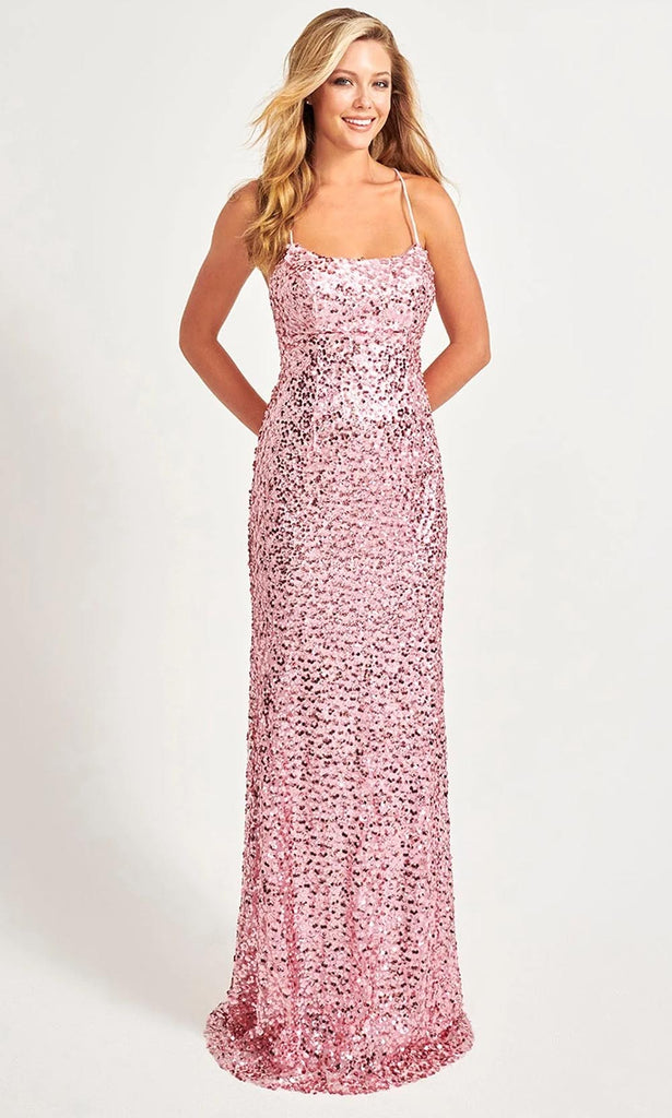 Make a grand impression on your special night wearing this Faviana 11033 gown. With a sleeveless design, this stunner is embellished with all-over flowery sequins that will make you shine brightly. The scoop neckline and empire waist create a flattering look, held in place by spaghetti straps. A backless style is also featured, secure by a strappy lace up closure to ensure a customized and comfortable fit. The skirt falls gently in a full length sheath silhouette and has a magnificent sweeping train behind. Exude a timeless appeal in this stylishly ornate Faviana 11033 masterpiece. Models are wearing the Light Pink, Gold, and Royal colors.